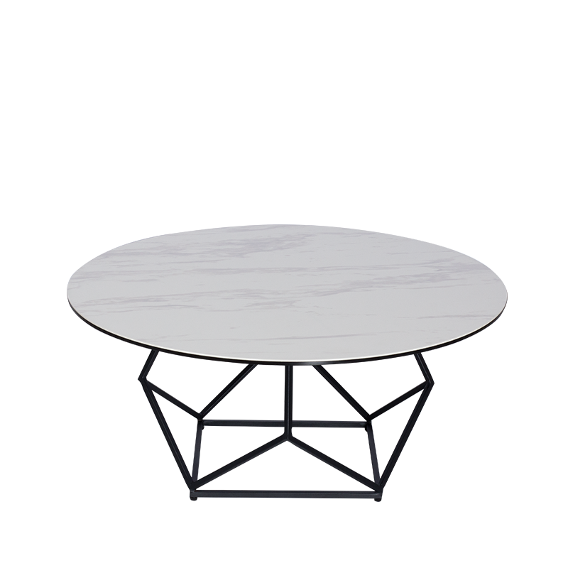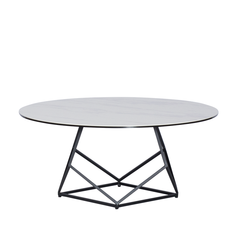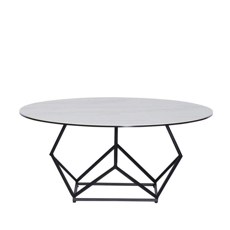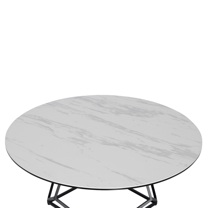 Стилна холна маса FRANEK 3 с кръгъл плот и оригинална основа с геометрични форми. Перфектното съчетание между модерен дизайн и функционалност.