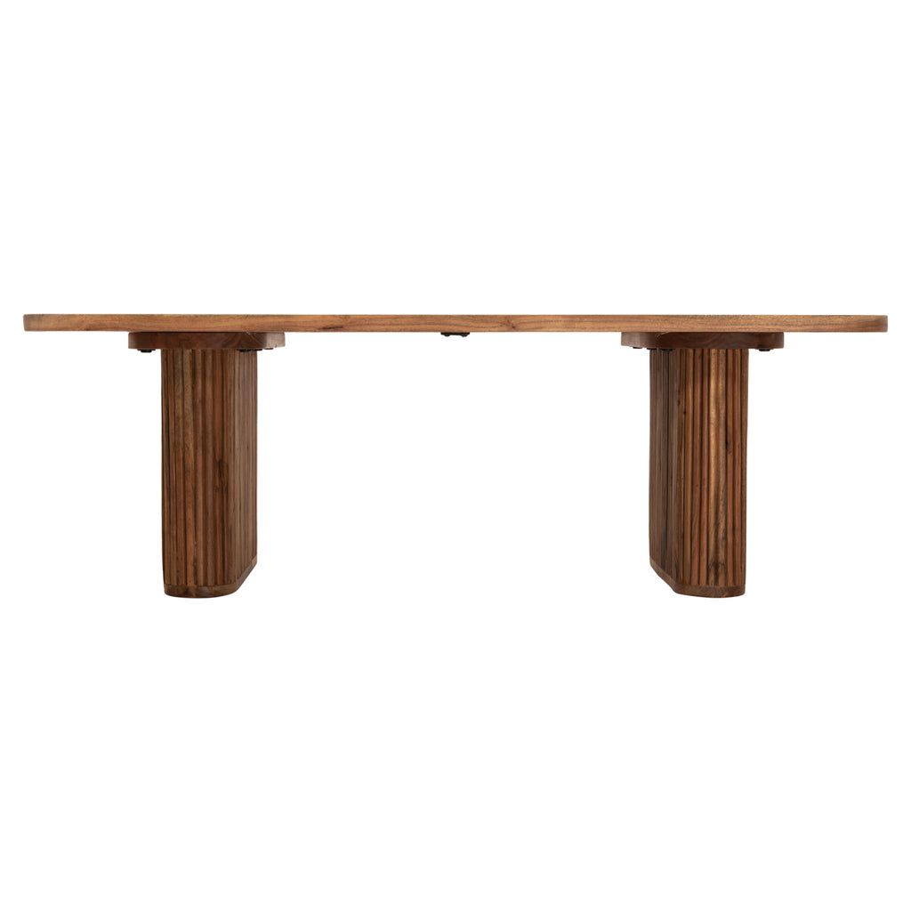 Το GROOT είναι ένα ορθογώνιο τραπέζι σαλονιού της ομώνυμης σειράς τραπεζιών. Είναι σχετικά μεγάλο για το είδος του, και η επιφάνειά του με τις όμορφα στρογγυλεμένες γωνίες, στηρίζεται σε 2 βάσεις/πόδια τοποθετημένες κάθετα. Αυτό το τραπέζι θα αναβαθμίσει αισθητικά το σαλόνι σας ενώ μπορεί να ταιριάξει με πολλά διαφορετικά στυλ και χρώματα στον τριγύρω χώρο. ΔΙΑΣΤΑΣΕΙΣ: 120x60x40Y εκ. ΥΛΙΚΑ ΚΑΤΑΣΚΕΥΗΣ: Το τραπέζι είναι κατασκευασμένο από μασίφ ξύλο ΑΚΑΚΙΑΣ. Όταν αναφερόμαστε σε μασίφ, εννοούμε τα ξύλα που κατασκευάζονται ολοκληρωτικά από τον κορμό δέντρου. Το μασίφ είναι η πιο ακριβή επιλογή σε είδος ξύλου αλλά ξεχωρίζει για την διαχρονική αισθητική του. Το αποτέλεσμα που προσφέρει στον κάτοχό του είναι πραγματικά μοναδικό. Το ξύλο της ακακίας είναι από τα καλύτερα είδη ξύλου που κυκλοφορούν στην αγορά. Η μηχανική του αντοχή και οι μηχανικές του ιδιότητες προσεγγίζουν αυτές άλλων γνωστών ξύλων, όπως η οξιά, ο δρυς, η afzelia, το teak και άλλα. Είναι υψηλής βιολογικής αντοχής, δηλαδή παρουσιάζει εξαιρετική αντοχή στην δράση μικροοργανισμών που θα μπορούσαν να καταστρέψουν το υλικό και τις κατασκευές. *Οι υπάρχουσες ρωγμές ή αυτές που ενδέχεται να δημιουργηθούν με την πάροδο του χρόνου οφείλονται στην συστολή-διαστολή του ζωντανού οργανισμού που λέγεται μασίφ ξύλο, και δεν αποτελούν κατασκευαστικό ελλάτωμα, δίνοντας πρωτοτυπία και μοναδικό design στο χώρο σας. Κατά τη διαδικασία παραγωγής γίνεται ομοιομορφοποίηση και σταθεροποίηση των ρωγμών που υπάρχουν, με υλικό κατασκευασμένο από το ίδιο ξύλο. Επομένως, μπορεί να υπάρχουν χρωματικές παραλλαγές και διαφορές στις διαστάσεις του προϊόντος λόγω των διαστάσεων του επεξεργασμένου ξύλου. Αυτά δεν αποτελούν ελάττωμα του προϊόντος. ΣΥΝΤΗΡΗΣΗ: Το τραπέζι δεν χρειάζεται ιδιαίτερη συντήρηση. Ένα πέρασμα με υγρό πανί είναι αρκετό, και εάν υπάρχουν λεκέδες με ένα απαλό spray από τα πολλά που κυκλοφορούν στην αγορά. Γενικά, ακόμα και σε περίπτωση λεκέδων το μυστικό είναι το γρήγορο καθάρισμα πριν προλάβει το ξύλο να «ποτίσει». *Παραδίδεται αμοντάριστο σε εργοστασιακή συσκευασία ** Η χρωματική απόδοση του προϊόντος ενδέχεται να διαφέρει ελαφρώς σε σχέση με την φωτογραφική απεικόνισή του στην οθόνη σας.