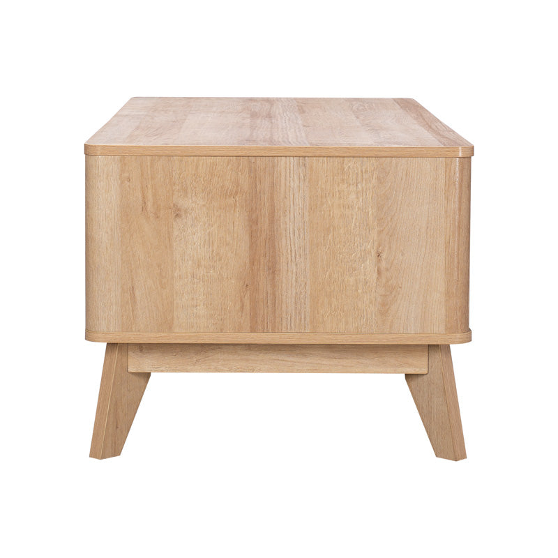 Холната маса Hamea е идеалният избор за тези, които търсят идеалния баланс между елегантност и функционалност. Със своя уникален дизайн, включващ вертикални линии и топли детайли, подчертани със златни метални дръжки, той предлага модерна и луксозна естетика на вашето жилищно пространство. Технически характеристики: Рамка: Изработена от висококачествен МДФ, гарантиращ издръжливост и устойчивост на износване във времето. Дизайн: Вертикални канали отпред за отличителен визуален ефект, съчетани с фини златни метални дръжки, които подобряват модерния външен вид. Съхранение: Включва чекмедже, идеално за затворено съхранение на вашите ежедневни вещи. Рафт: Осигурява допълнително организационно пространство за различни нужди. Цвят: Предлага се в естествен дървесен тон. Размери на продукта: Дължина: 110 см Ширина: 55,2 см Височина: 45 см Информация за материала: MDF (плочи от дървесни влакна със средна плътност): MDF е материал, произведен от дърво. Произвежда се чрез свързване на дървесни влакна със смола (лепило) под високо налягане и топлина с помощта на специализирани преси. Той е по-плътен и издръжлив от ПДЧ (ПДЧ) и не абсорбира влага, което го прави здрав и надежден. Инструкции за поддръжка: Използвайте мека, суха кърпа, за да отстраните праха и мръсотията. За петна използвайте мека кърпа, навлажнена с хладка вода и мек сапун. Внимателно избършете повърхността, докато петното бъде отстранено. Накрая подсушете добре повърхността с чиста, суха кърпа. MDF е чувствителен към влага, така че е важно да го предпазите от излагане на вода. Незабавно избършете всякакви течности. Избягвайте използването на агресивни почистващи препарати или химикали, тъй като те могат да повредят материала. Масата за кафе Hamea е идеалното решение за добавяне на стил и комфорт към вашето пространство, докато организирате вещите си с абсолютна практичност