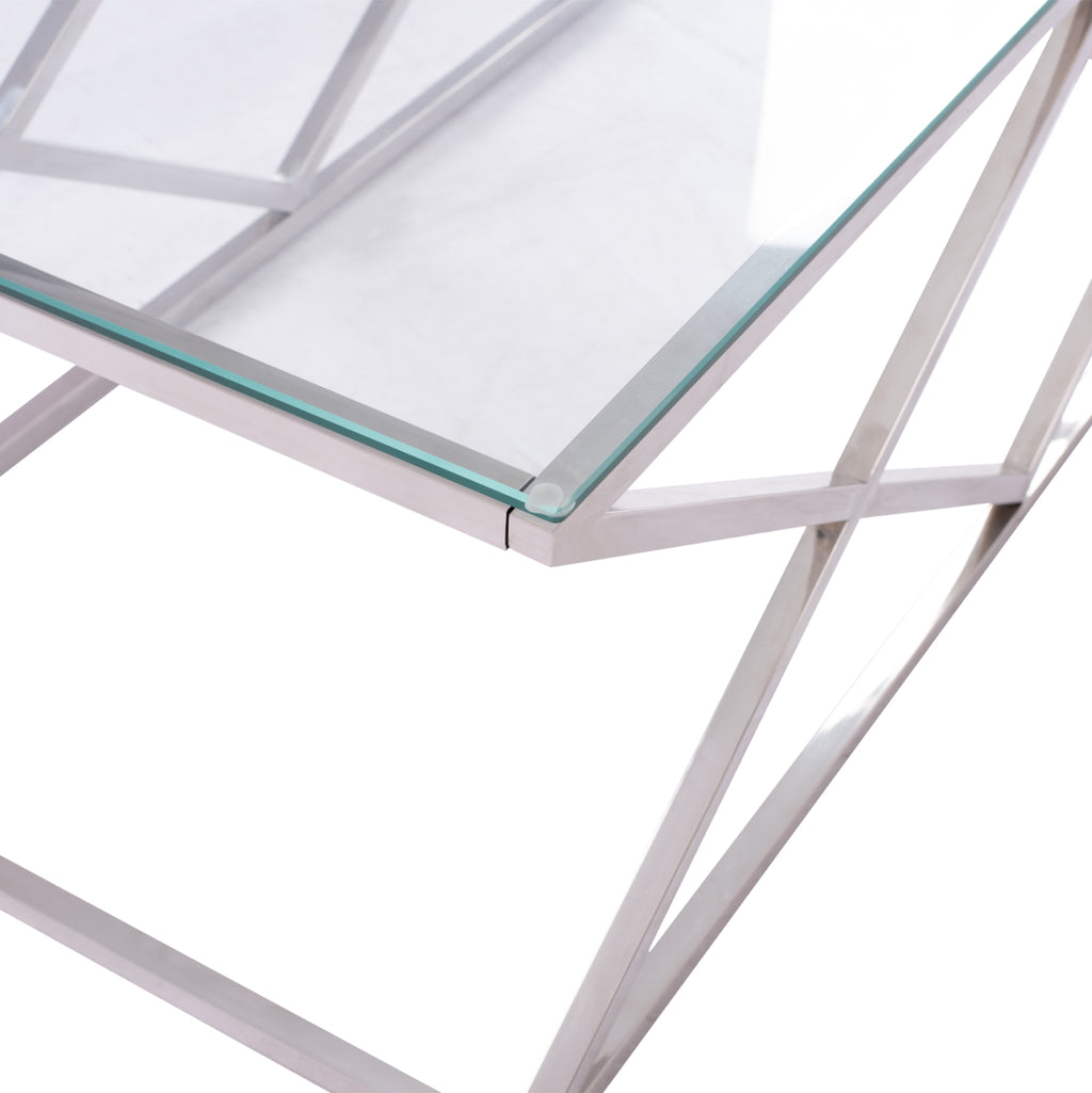 Холна маса HOLLAND с хромирана метална конструкция и стъклен плот. Размери: 120х60х45см.