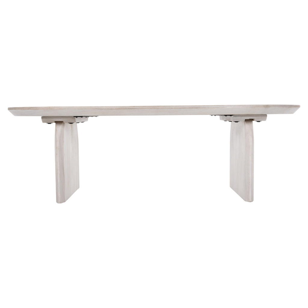 Открийте холната масичка HONKY, която е изцяло изработена от масивно мангово дърво в БЯЛ цвят. Формата е типичен овал и се поддържа от 2 масивни арки, изработени от същото дърво и в същия цвят.