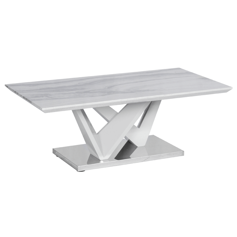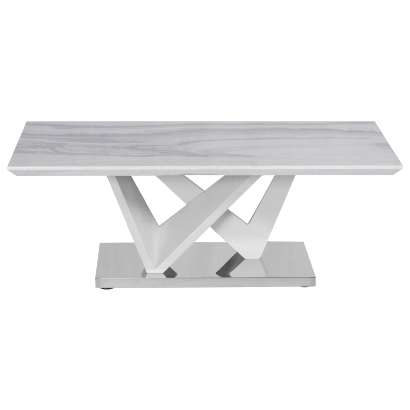 Холната маса INDIANA е модел с разчупена основа и правоъгълен плот с шарка, наподобяваща мрамор. Изработена е от висококачествени материали – МДФ с гланц покритие и неръждаема стомана. Пълна информация за размерите и характеристиките на модела ще намерите в таблицата в таб/поле "Техническа информация".