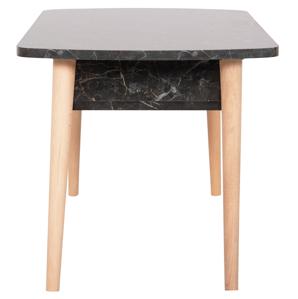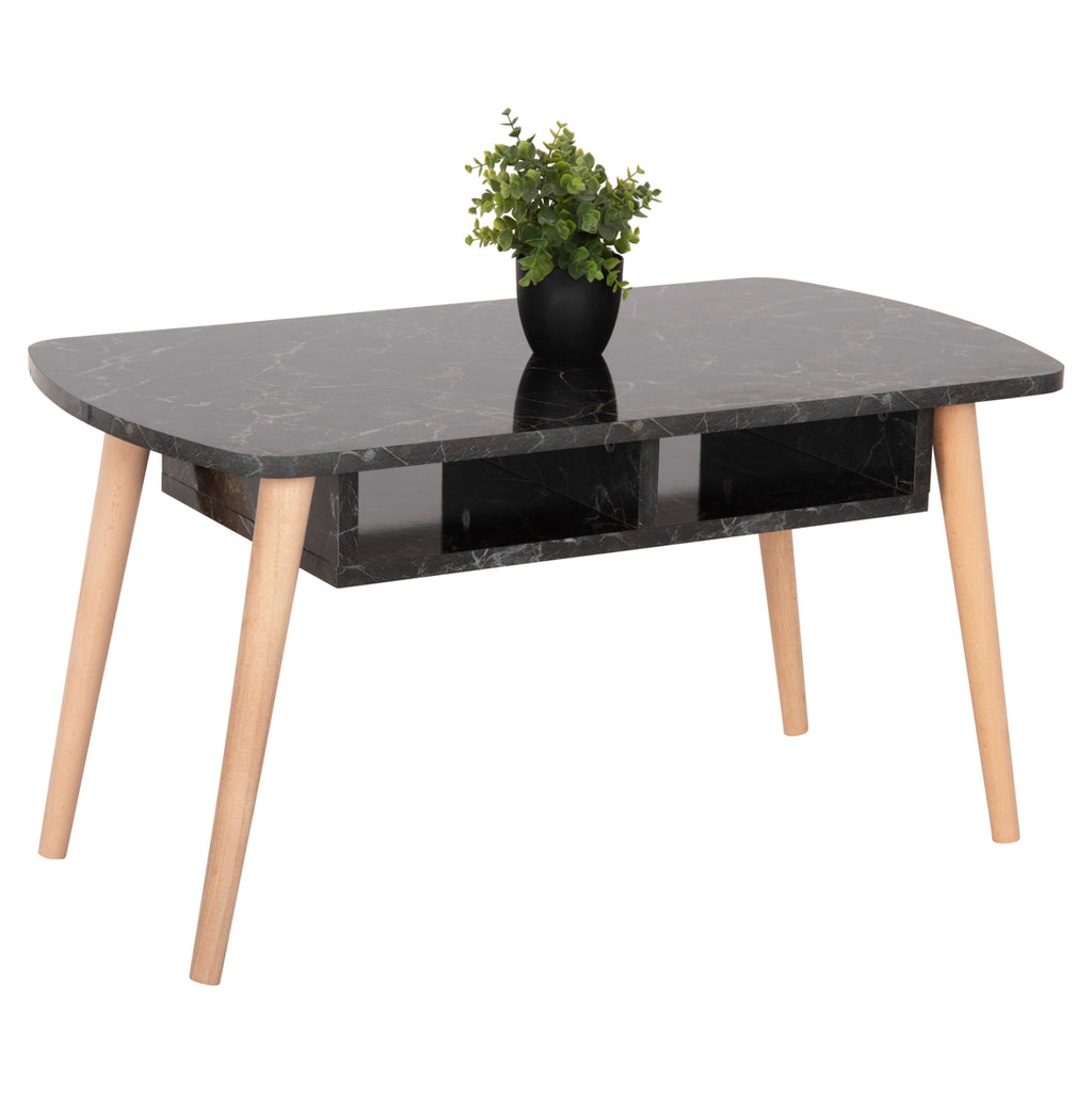 Новата маса SLIVEN ще задоволи и обслужи всяка ваша нужда в хола. Има 18 мм меламинова повърхност в цвят ЧЕРЕН МРАМОР, докато краката са дървени в НАТУРАЛЕН дървесен цвят. Двете отворени зони за съхранение под повърхността идеално допълват тази красива маса. РАЗМЕРИ: 90x50x47.5H см. Места за съхранение: 27x36x10Y см. Разстояние между краката: 85х40 см. ПОДДРЪЖКА: Както повърхностите, така и краката се почистват лесно с влажна кърпа. КАКВО ХАРЕСВАМЕ: •Дизайн •Практичност •Съотношение цена/качество *Продуктът се доставя във фабрична опаковка ** Цветопредаването на продукта може леко да се различава от фотографското представяне на вашия екран.