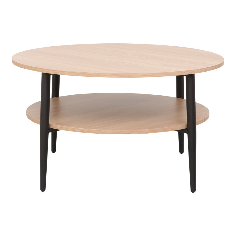 Кръгла масичка за кафе с рафт за съхранение – модерен дизайн в естествено покритие Освежете хола си със стилната и практична масичка за кафе Kody. Отличаваща се с модерен дизайн, който се съчетава безпроблемно с всеки интериорен стил - от скандинавски до минималистичен - тази маса внася едновременно елегантност и функционалност във вашето пространство. Интегрираният долен рафт осигурява допълнително място за съхранение на книги, списания или декоративни предмети, поддържайки всекидневната ви подредена и изискана. Технически спецификации: Изработен от висококачествен метал и плочи от дървесни частици с меламиново покритие, гарантиращо издръжливост и дълготрайна употреба Предлага се в красиво двуцветно покритие: черно и естествено дърво Кръгъл дизайн с изчистени линии и изискан завършек Допълнителен рафт за съхранение за практична организация Размери на продукта: Дължина: 80 см Ширина: 80 см Височина: 45 см Бележки: Продуктът е доставен несглобен, във фабрична опаковка, с включено подробно ръководство за сглобяване Действителният цвят на продукта може леко да се различава от това, което се появява на екрана ви