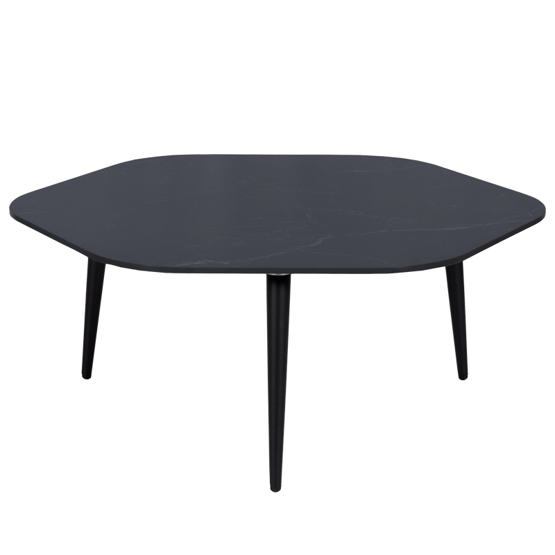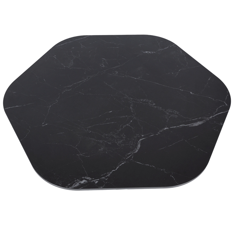 Холната маса NAROL 3 впечатлява с модерен и минималистичен дизайн, който лесно допълва съвременния интериор. Хексагоналният плот, изработен от висококачествена черна керамика, излъчва елегантност и издръжливост, създавайки стилен акцент. Трите метални крака с праховобоядисан матов финиш придават стабилност и изчистена визия, като подчертават индустриалния характер на модела. NAROL 3 е перфектното решение за тези, които търсят комбинация от практичност и естетика – идеална за напитки, книги или декоративни акценти. Пълна информация за размерите и характеристиките на модела ще намерите в таблицата в таб/поле "Техническа информация".
