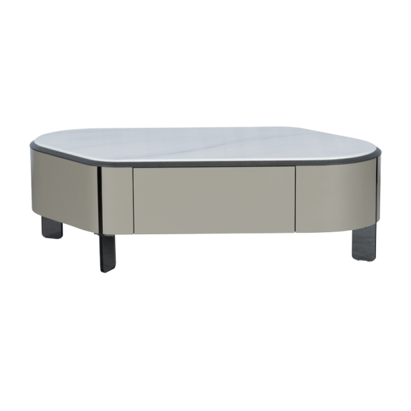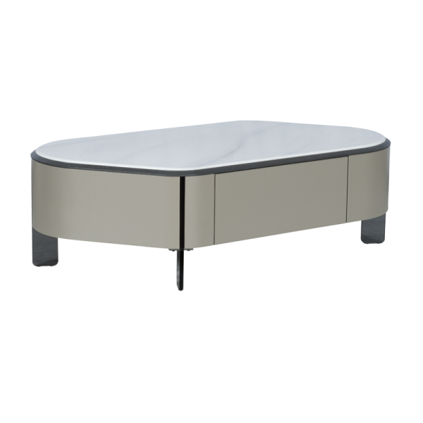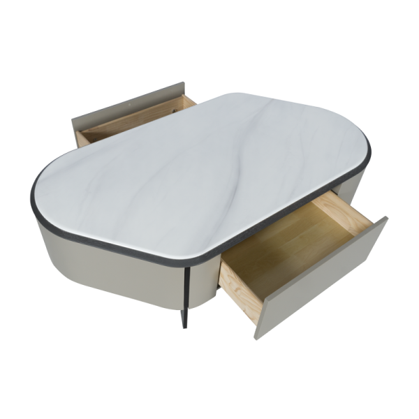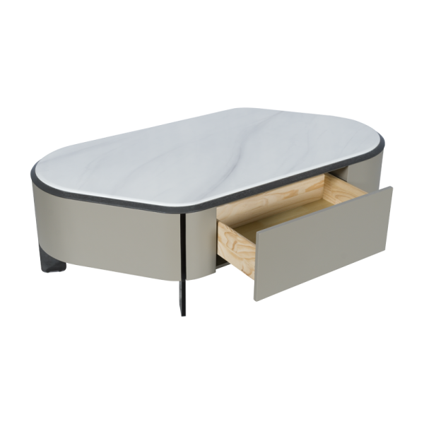 Холната маса PALMER впечатлява с изчистена елегантност и стилен дизайн, в който се преплитат модерни линии и висококачествени материали. Плотът от керамика придава усещане за лукс и изтънченост, а заоблените контури омекотяват визията и я правят подходяща за различни интериорни концепции. Основата е изработена от МДФ, краката са от праховобоядисан метал, а двете плавно отварящи се чекмеджета с корпуси от борова дървесина предлагат удобно място за съхранение на дребни вещи.