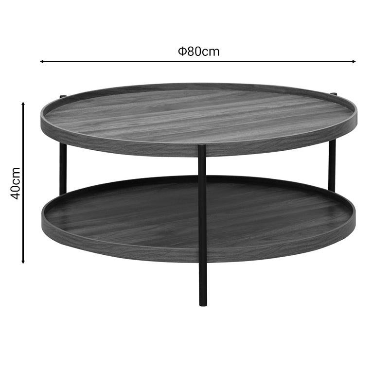 Холна маса Portogie мдф орех-метал черен Φ80x40см