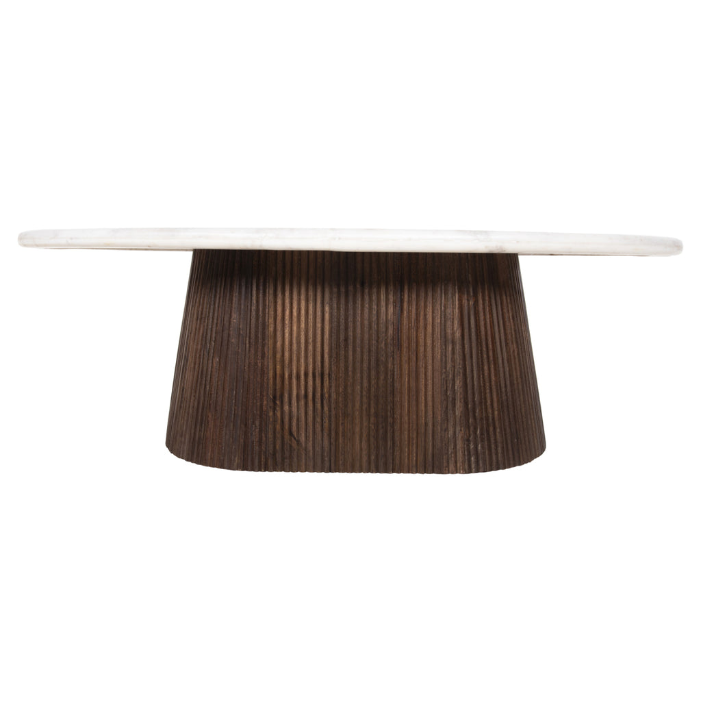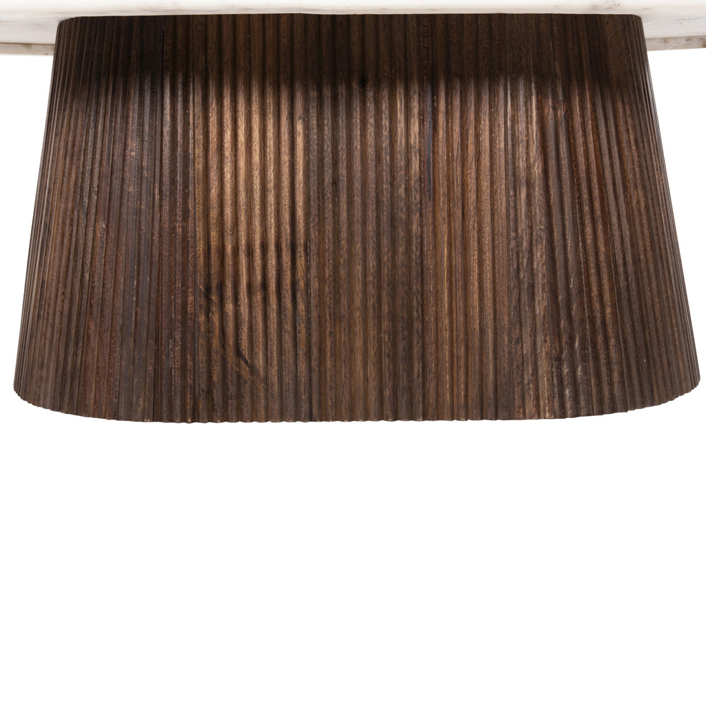 PURGER е красива овална маса за всекидневна в задоволителен размер с повърхност БЯЛ МРАМОР. Тази повърхност лежи върху централна основа със заострена овална форма от качествено масивно дърво, майсторски резбовано. Тази впечатляваща маса ще обнови естетически вашата всекидневна, докато съчетава много различни стилове и цветове в околното пространство. РАЗМЕРИ: 120x70x38Y см. Дебелина на повърхността: 3см. Височина на крака: 35 см. Основа: 68х50 см. МАТЕРИАЛИ НА ИЗРАБОТКА: Овалната основа е изработена от масивно МАНГОВО дърво. Когато говорим за масивно дърво, имаме предвид дървета, направени изцяло от ствола на дърво. Масивната дървесина е най-скъпият избор по отношение на дървесината, но се откроява със своята вечна естетика. MANGO е плътна и здрава твърда дървесина с особено привлекателна вода. Неговите дървесни цветове са уникални, тъй като включват няколко тона и цветове, вариращи от светли нюанси като тъмно кафяво до светло розово или зелено. Той е по-лек от другите видове дървесина и е водоустойчив. Повърхността е БЯЛ МРАМОР с отлично качество. * Съществуващите пукнатини или тези, които могат да се появят с течение на времето, се дължат на свиването-разширяването на живия организъм, наречен масивно дърво, и не са производствен дефект. Също така, може да има цветови вариации и разлики в размерите на продукта поради размерите на обработената дървесина. Това не са дефект на продукта. ПОДДРЪЖКА: Масата не се нуждае от специална поддръжка. Достатъчно е минаване с влажна кърпа, а ако има петна с нежен спрей от многото на пазара. Като цяло, дори и при петна, тайната е бързото почистване, преди дървото да има време да се "напои". Същото важи и за мрамора. *Доставя се несглобен във фабрична опаковка ** Цветопредаването на продукта може леко да се различава от фотографското представяне на вашия екран.