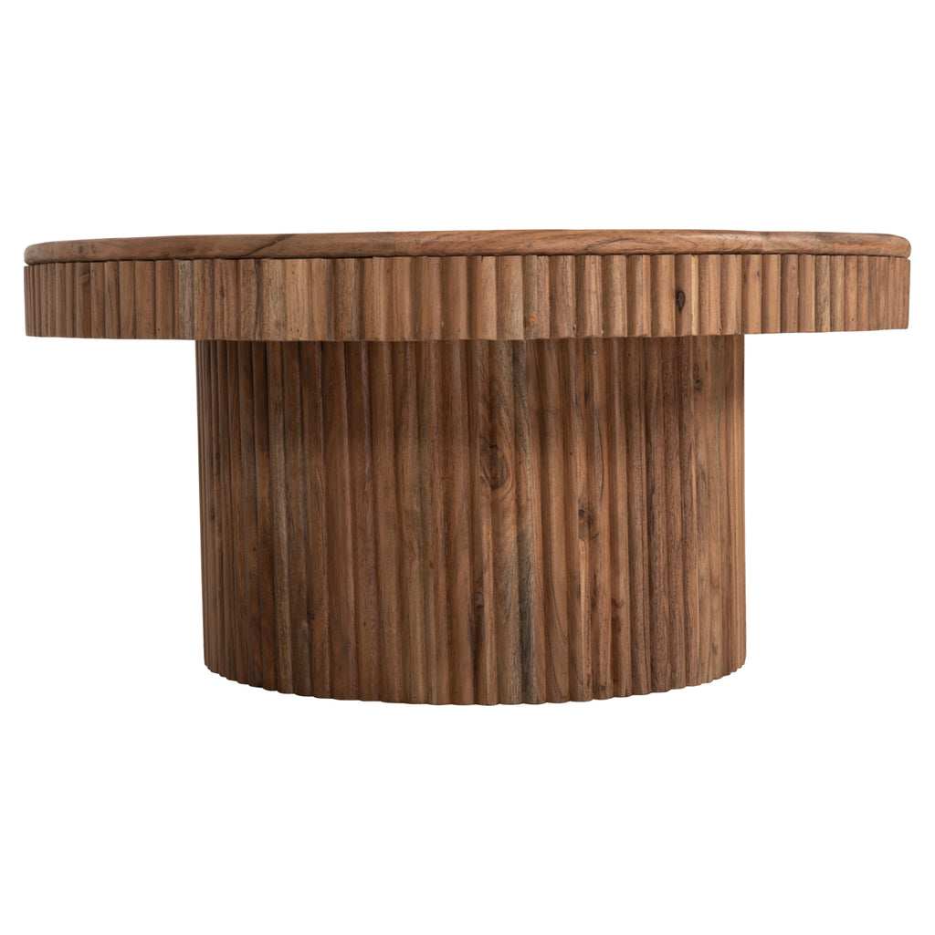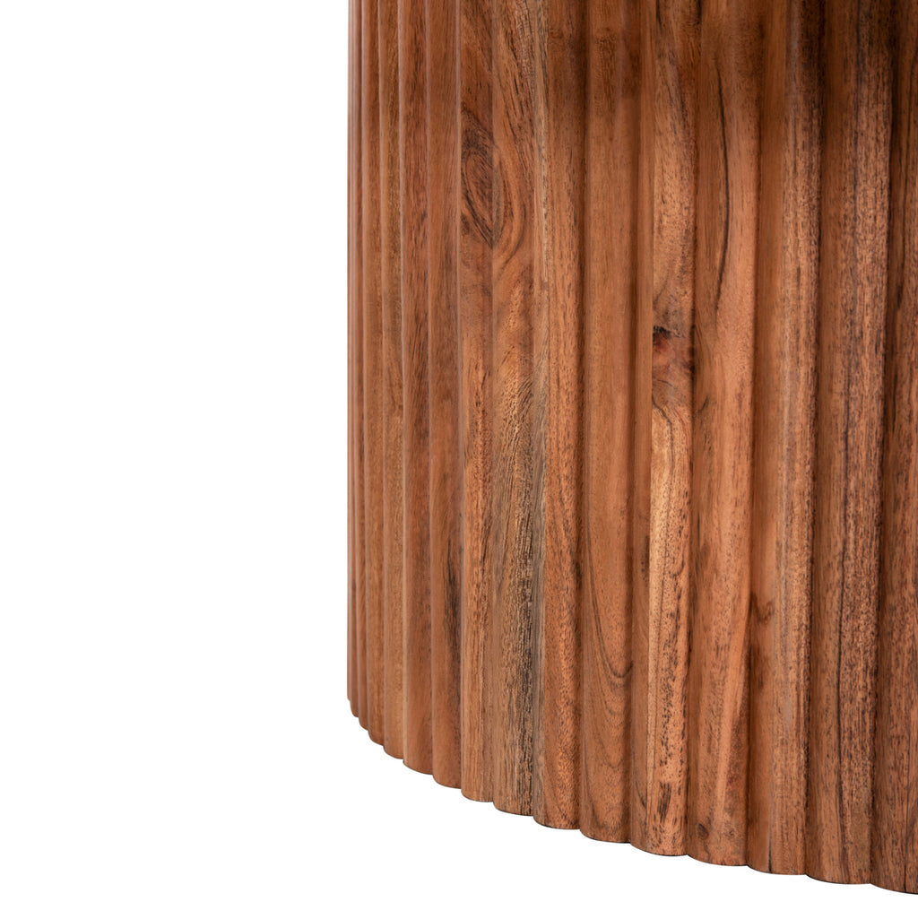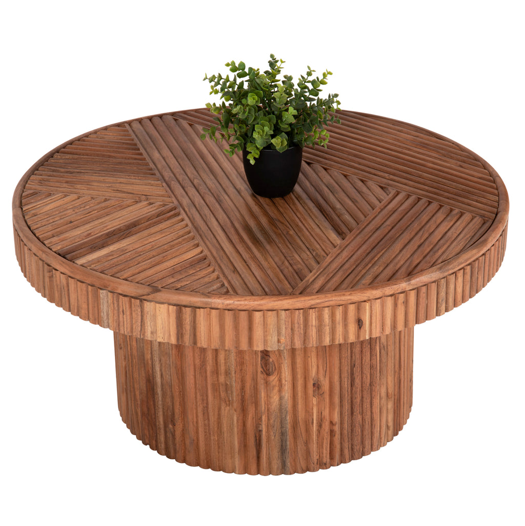 RANNE е кръгла маса за всекидневна в естествен дървесен цвят. Масата се опира на дървена централна цилиндрична колона, върху която е монтирана кръгла повърхност, изработена от същото качествено масивно дърво. Това е ниска маса, която има предимството на практичност, както и на качество. РАЗМЕРИ: Φ80x38Y см. МАТЕРИАЛИ НА ИЗРАБОТКА: Масата е изработена от масивна дървесина AKAKIAS. Когато говорим за масивно дърво, имаме предвид дървета, направени изцяло от ствола на дърво. Масивната дървесина е най-скъпият избор по отношение на дървесината, но се откроява със своята вечна естетика. Ефектът, който предлага на притежателя си е наистина уникален. Акациевото дърво е един от най-добрите видове дървесина на пазара. Неговата механична якост и механични свойства се доближават до тези на други добре познати дървесини като бук, дъб, афцелия, тик и др. Има висока биологична устойчивост, т.е. проявява отлична устойчивост на действието на микроорганизми, които могат да разрушат материала и конструкцията. *Съществуващите пукнатини или такива, които могат да се образуват с течение на времето се дължат на свиването-разширяването на живия организъм, наречен масивна дървесина, а не са производствен дефект, придавайки оригиналност и уникален дизайн на вашето пространство. По време на производствения процес съществуващите пукнатини се изглаждат и стабилизират с материал от същата дървесина. Поради това може да има цветови вариации и разлики в размерите на продукта поради размерите на обработената дървесина. Това не са дефект на продукта. ПОДДРЪЖКА: Холната маса не се нуждае от специална поддръжка. Достатъчно е минаване с влажна кърпа, а ако има петна с нежен спрей от многото на пазара. Като цяло, дори и при петна, тайната е бързото почистване, преди дървото да има време да се "напои". *Доставя се несглобен във фабрична опаковка ** Цветопредаването на продукта може леко да се различава от фотографското представяне на вашия екран.