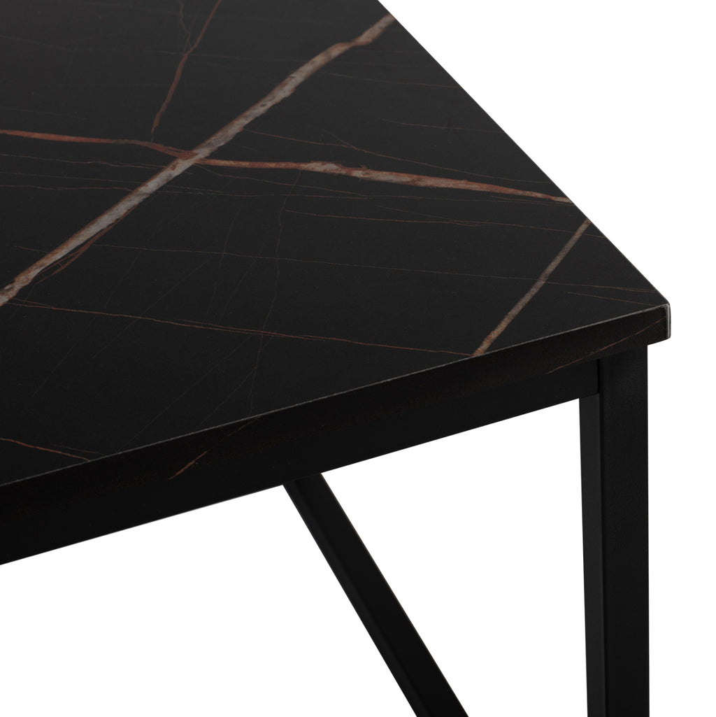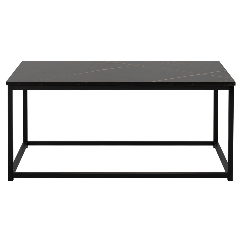 Маса за кафе ΜΜ8975.13----- SAFFRON ще придаде глътка обновяване и свежест на вашия хол. Това е правоъгълна масичка за кафе с крака в стил пиедестал. Тази основа е метална в черен цвят, а повърхността й има вид на черен мрамор. РАЗМЕРИ: 95x55x43H см. Размери на метала: 20x20 mm МАТЕРИАЛИ НА ИЗРАБОТКА: Повърхността е изработена от висококачествен меламин с дебелина 15 mm. Меламинът е вид дървесина под формата на ПДЧ (панел). Като материал е много издръжлив и с голяма твърдост. Така че това е синтетичен материал с много твърда повърхност, което го прави много устойчив на драскотини, абразия и петна. Основата е изработена от метал с електростатично боядисване. Електростатичното боядисване е процес на сухо покритие, използван като метално покритие. Електростатичното боядисване е нанасяне на сух прах чрез електростатичен процес, който след това се „свързва“ към метала чрез топлина. ПОДДРЪЖКА: Както повърхността, така и краката се почистват лесно с влажна кърпа. ПРЕДИМСТВА: •Здрава конструкция •Качествени материали и начин на изработка •Естетически красиви мебели •Практични за използване •Имат предпазна пластмаса на краката за защита на пода *Масата се доставя разглобена във фабрична опаковка
