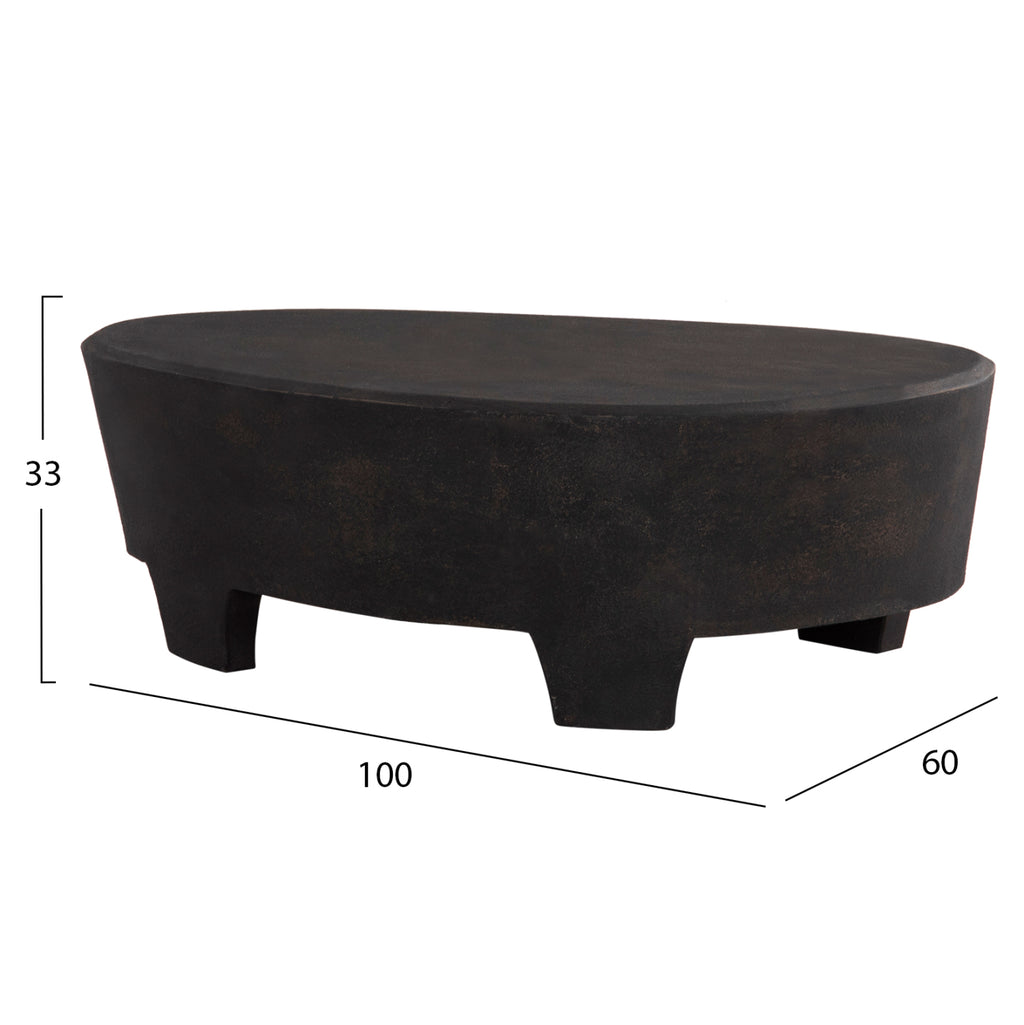 Това е ръчно изработена овална холна маса от MDF с циментова текстура, следваща най-новите тенденции в интериорния дизайн, в цвят ЧЕРНО. Съчетайте го с подобни естетични мебели като диван и фотьойли и променете имиджа на хола си. Идеален да допълни по най-добрия начин декорация в стил "остров"! РАЗМЕРИ: 100х60х33см МАТЕРИАЛ ЗА ИЗРАБОТКА: Продуктът е изработен от MDF. MDF (влакна със средна плътност) е модерен материал за масово потребление с основните характеристики на абсорбиране на минимална влага, хомогенност на масата, задоволителни механични свойства, отлична гладкост и много възможности за обработка. ПОДДРЪЖКА: Достатъчно е редовно почистване на прах и забърсване с влажна кърпа, като можете да използвате и меки търговски почистващи препарати. ** Цветопредаването на продукта може леко да се различава от неговото фотографско представяне на вашия екран.
