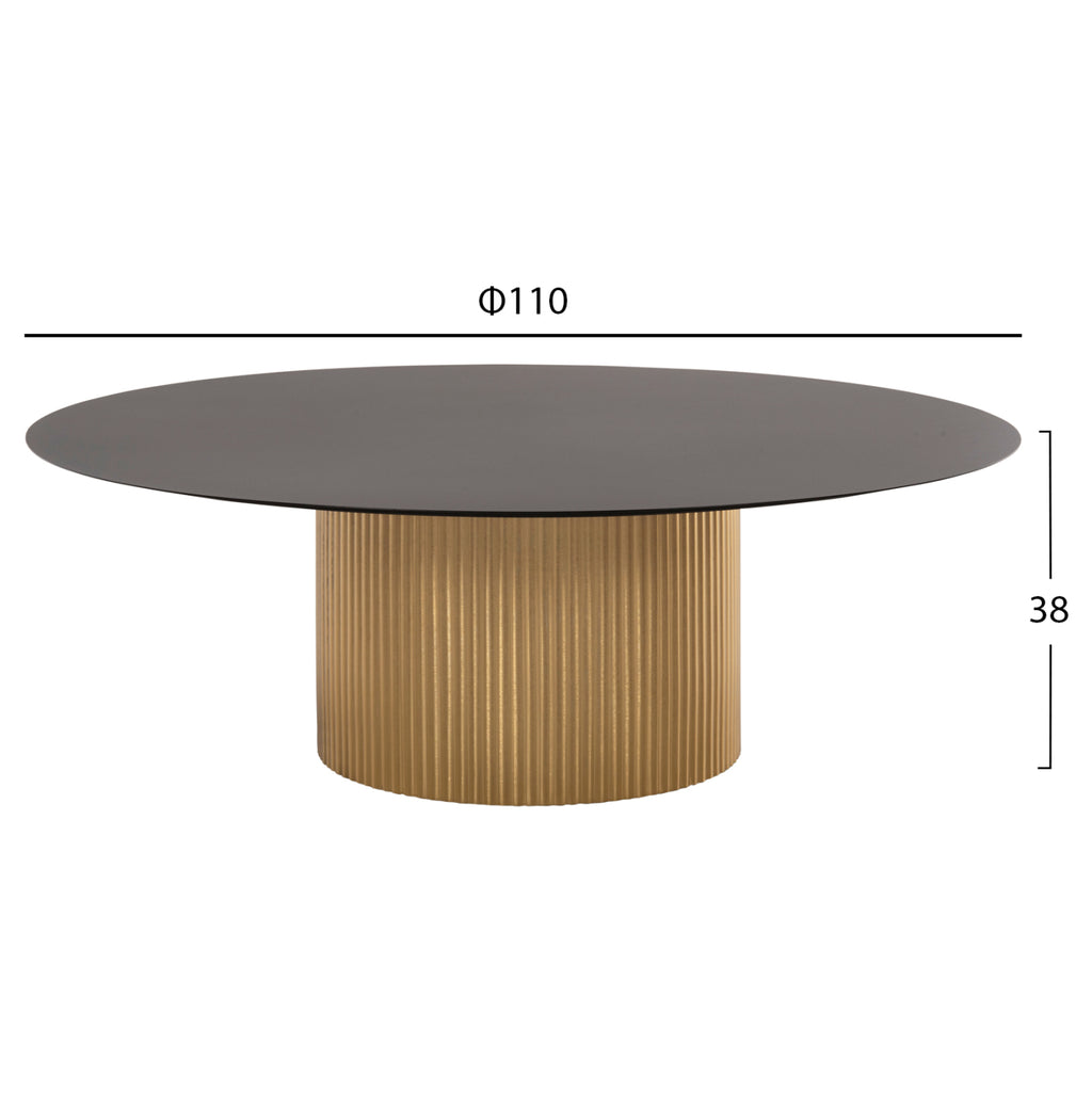 ова е много специална кръгла маса с цилиндрична метална плисирана основа в цвят GOLD. Повърхността също е метална в ЧЕРЕН цвят. Комбинацията е наистина нещо уникално и впечатляващо. Идеален както за дома, така и за бизнес помещения.