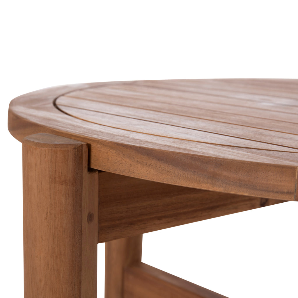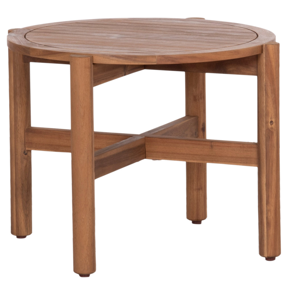 Акациевото дърво е известно със своята здравина и висока устойчивост на атмосферни влияния. Кръглата външна масичка SANJI се отличава с кръстосана основа и четири крака, които осигуряват стабилност и модерна визия. Благодарение на механичните си свойства, акациевата дървесина се нарежда сред най-надеждните, редом с тик, бук и дъб. Освен това материалът е естествено устойчив на микроорганизми и влага – идеален за дългосрочна употреба на открито.