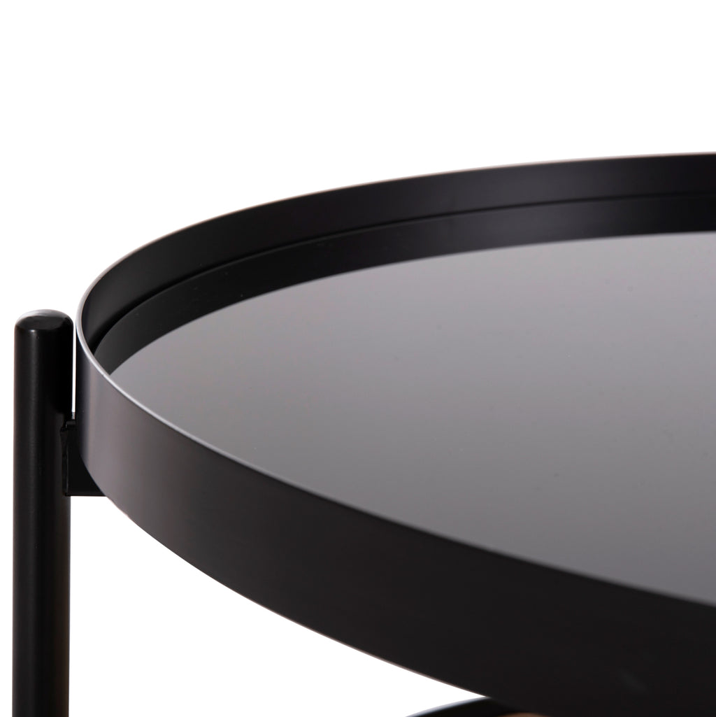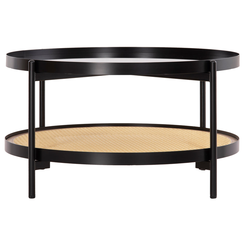 SEITZ е красива ниска кръгла маса за всекидневна. Характерното за него е, че има 2 повърхности, които лежат върху ЧЕРНИ метални кръстосани основи. Горната повърхност е изработена от стъкло (безопасно стъкло) в ЧЕРЕН цвят, а долната е изработена от ратан в ракита в НАТУРАЛЕН цвят. Уникална маса, която съчетава практичност и лукс за вашето пространство. РАЗМЕРИ: Φ80х45см. Дебелина на стъклото: 8мм КОНСТРУКТИВНИ МАТЕРИАЛИ: Рамката е метална с електростатично боядисване. Електростатичното боядисване е процес на сухо покритие, използван като метално покритие. Електростатичното боядисване е нанасяне на сух прах чрез електростатичен процес, който след това се „свързва“ към метала чрез топлина. Долната повърхност е изработена от синтетичен ратан. Синтетичният ратан е изработен от висококачествени изкуствени влакна. Това дава отлична здравина и издръжливост. ПОДДРЪЖКА: Холната маса не се нуждае от специална поддръжка. Достатъчно е избърсване с влажна кърпа. * Холната маса се доставя в разглобен вид. **Точното цветопредаване на продукта може леко да се различава от действителния продукт поради различни настройки на монитора.