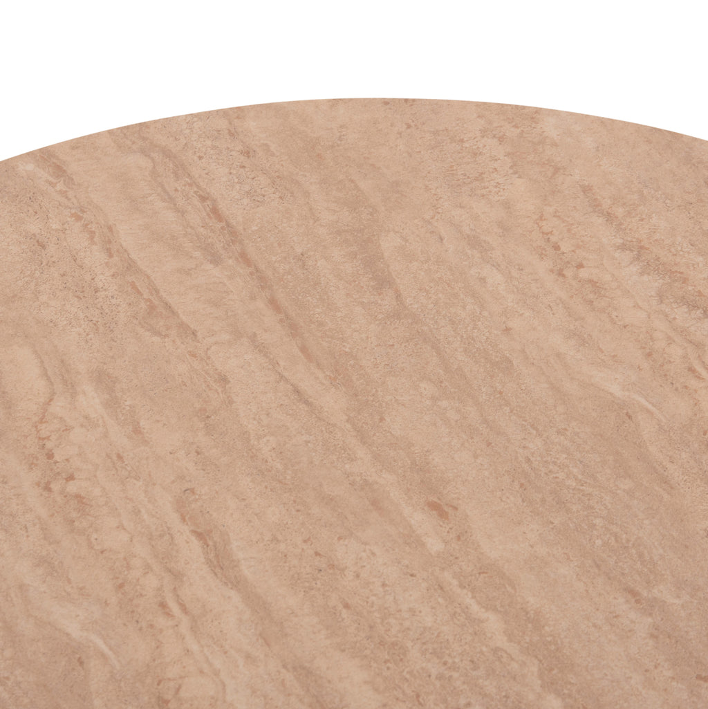 Повърхността на холната маса SKY е изработена от качествена керамика в цвят ТРАВЕРТИН, която придава усещане за естествена красота и изтънченост. Керамиката е изключително устойчива на надраскване, топлина и петна – идеален избор за ежедневно ползване. Благодарение на непорестата си структура, тя не задържа прах и се почиства лесно само с влажна кърпа. Това прави масата SKY не само естетически красива, но и практична за поддръжка.