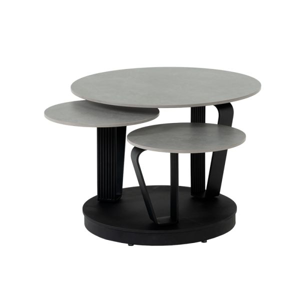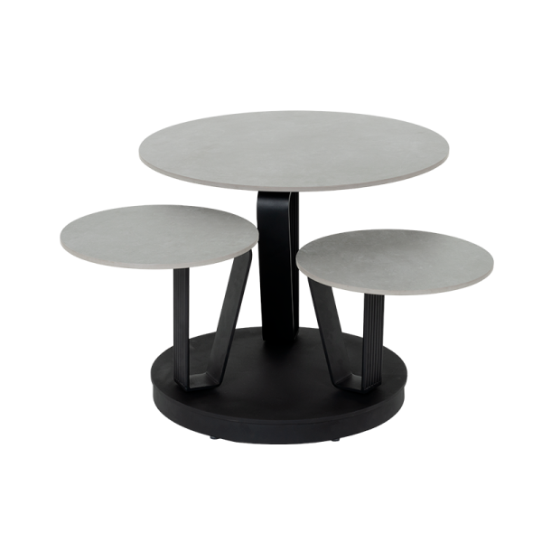 Комплект холни маси URICA е израз на съвременен дизайн и функционалност. Плотовете, изработени от висококачествена керамика в елегантен сив цвят, се отличават с устойчивост и изтънченост. Основата е изработена от праховобоядисан метал в черен цвят и впечатлява с динамичния си и уникален дизайн. С иновативния механизъм за завъртане, масите се трансформират и разкриват многопластовата си структура, създавайки визуален акцент и удобство във всяко модерно пространство. Комплект холни маси URICA е идеалният избор за интериори, където стилът и практичността вървят ръка за ръка. Пълна информация за размерите и характеристиките на модела ще намерите в таблицата в таб/поле "Техническа информация".
