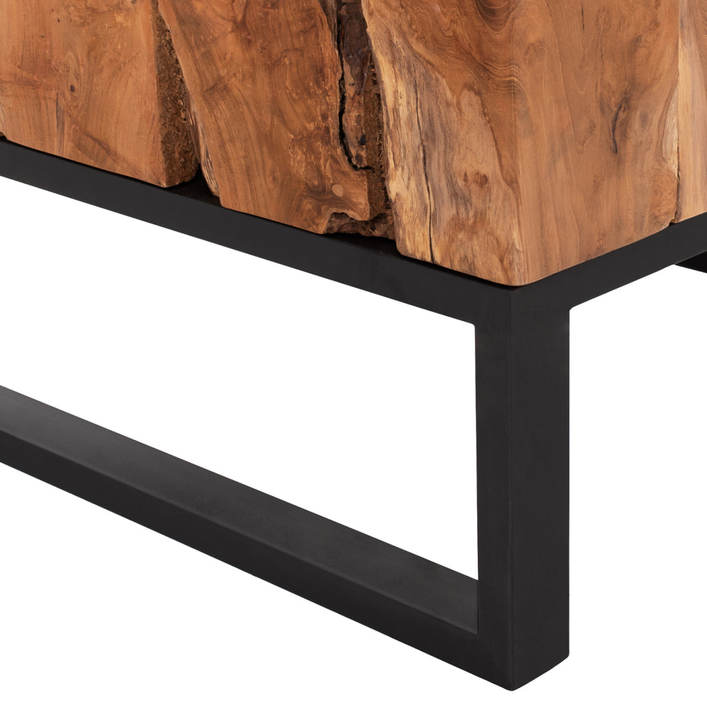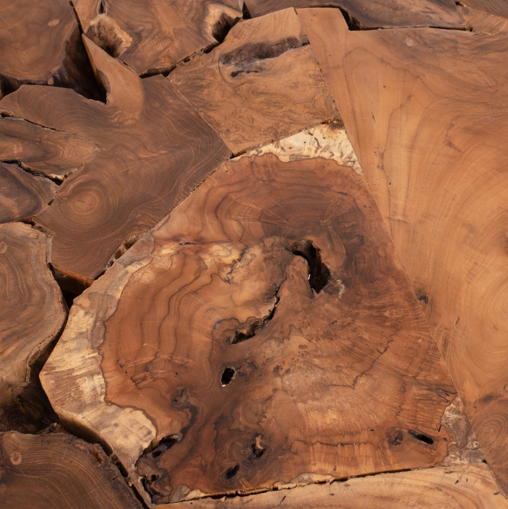 Тази изискана холна маса от масивно тиково дърво е въплъщение на естествената красота и качествено изработване. С внушителното си тегло от 36 кг и уникална дървесна текстура, тази маса е инвестиция, която ще украсява вашата дневна с години напред.