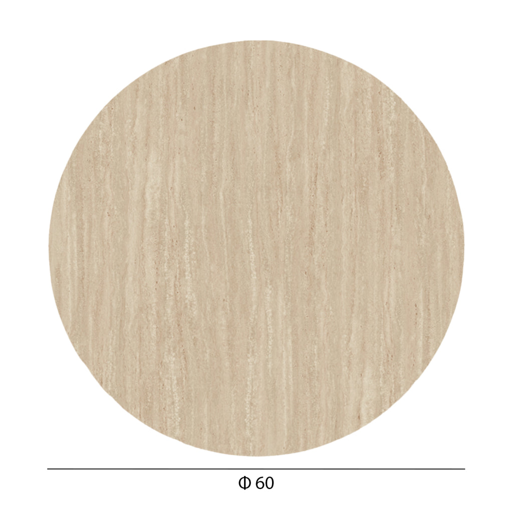 Кръгъл скосен плот за маса в цвят ТРАВЕРТИН, подходящ за контакт с храна и като цяло материалът е екологичен. Може да се използва в различни места, като кафенета, ресторанти и туристически места за настаняване, както на закрито, така и на открито. **ПРЕДИМСТВА ПРИ МОНТАЖ: Тази специфична повърхност има немски слотове на гърба („слотове“ или „водачи“), в които пасват специалните винтове с квадратна „глава“, включени в опаковката, като можете да променяте разстоянието им по „водача“, така че да съвпада с основата, която имате. Така че, поставете повърхността върху основата, която имате (квадратна или „кръстосана“), и след това я затегнете с шайбите, които също са включени в опаковката. По този начин напълно избягвате пробиването на повърхността. РАЗМЕРИ: Φ60см. Дебелина: 12мм. Диагонални „водачи“ на основата: от 25x25см до 55x55см (завинтване според размера на вашата основа) МАТЕРИАЛ ЗА КОНСТРУКЦИЯ: Повърхността е изработена от HPL. Истинското му наименование е ламинат под високо налягане „HPL“. Това са плоскости, покрити с листове от синтетични материали, които приличат на дърво. Като материал, той има матово или гланцово покритие. Основните му характеристики са устойчивостта му на удари, износване и петна, устойчивостта му на образуване на бактерии и накрая стабилността на цвета му на светлина и изкуствено осветление. Той също така показва устойчивост на високи температури, с отлична устойчивост на огън, надраскване и особено висока устойчивост на вода. ** Цветопредаването на продукта може леко да се различава от фотографското му представяне на вашия екран.