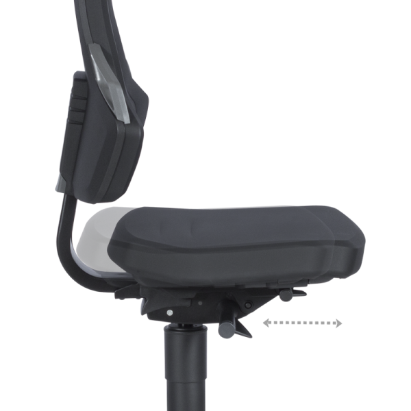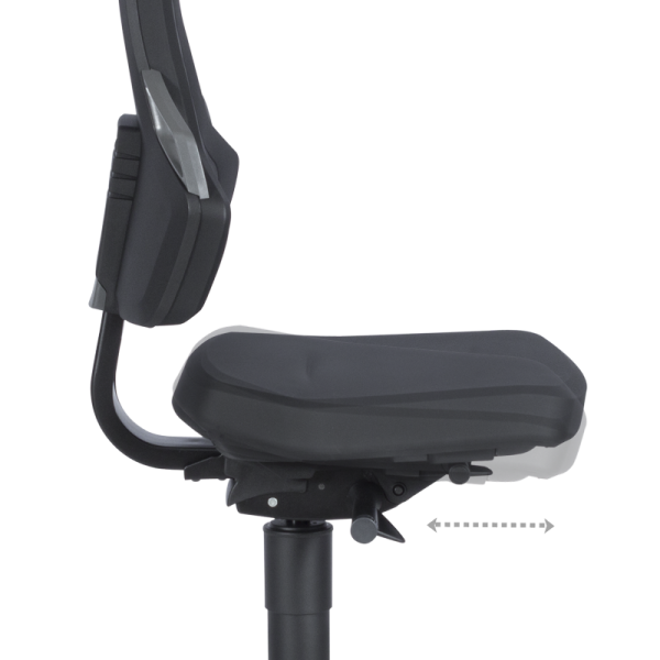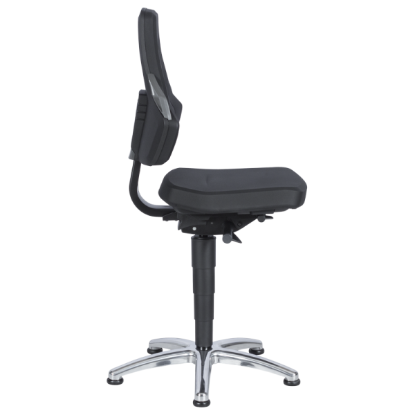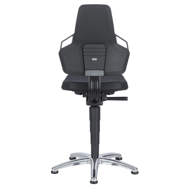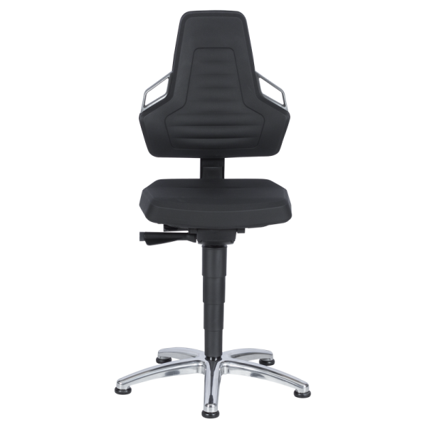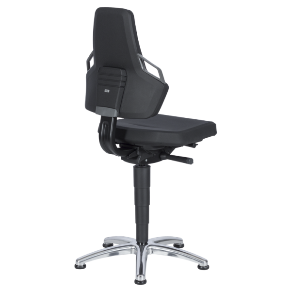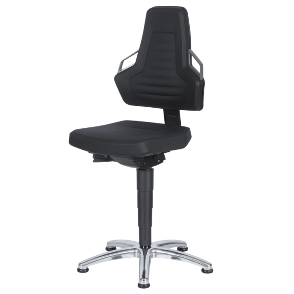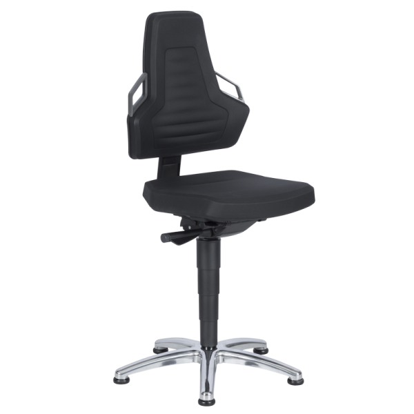 Индустриален ергономичен стол BIMOS NEXXIT 1 предлага интелигентна ергономия, издръжливост и лесна поддръжка, проектирани за взискателни професионални среди. Анатомично оформената облегалка осигурява стабилна поддръжка в областта на кръста и раменете, като насърчава правилна стойка и позволява свободно движение на тялото. Седалката и облегалката са изработени от формована полиуретанова пяна с плътна, устойчива и лесна за почистване повърхност, която е отличен избор за лаборатории и индустриални зони с високи изисквания към хигиената. Синхронният механизъм с автоматично регулиране спрямо теглото позволява динамично следване на движенията на тялото и поддържане на оптимална позиция без необходимост от ръчни настройки. Предният ръб на седалката е заоблен, за да предотвратява притискане на бедрата и да осигурява комфорт при продължително седене. Всички функции се управляват удобно чрез един лост от седнало положение. Практичните странични дръжки позволяват лесно преместване на стола, без риск от замърсяване на повърхностите. NEXXIT 1 е отлично решение за професионални среди, където ергономията, дълготрайният комфорт и хигиенната безопасност са от ключово значение.