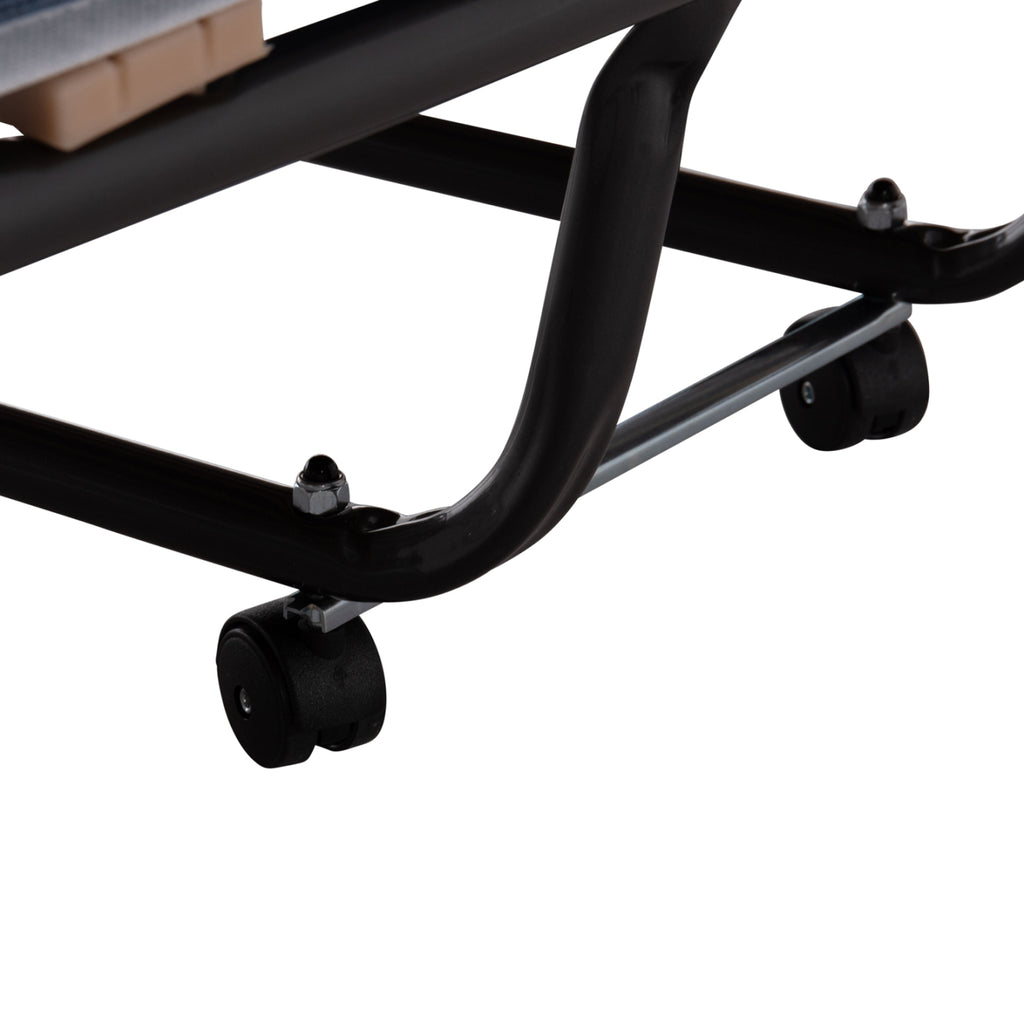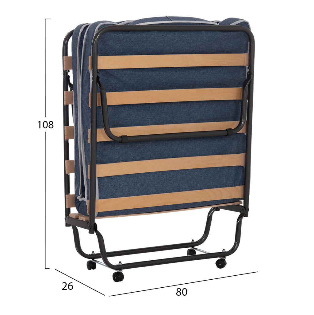 SLADE е много практично метално сгъваемо легло (ранко) под формата на куфар (къмпинг) в сив цвят, което ще отпусне ръцете ви. Може да се "сгъва" и лесно да се транспортира или съхранява благодарение на колелата си, предлагайки качествено решение навсякъде, където е необходимо. Има анатомични дървени дъски. *Пакетът включва и матрак с цвят на калъфа DENIM LOOK (син). ** Идеален и за професионална употреба (хотели, къщи за гости и др.). РАЗМЕРИ: Разкрити размери: 80x183x37.5H cm. Размери в затворен вид: 80x26x108H cm. Височина на седалката: 37см. Височина на крака: 25 см. Дебелина на матрака: 6,5см. кърпа и бъдете сигурни, че ще я имате дълги години. ** Цветопредаването на продукта може леко да се различава от неговото фотографско представяне на вашия екран.