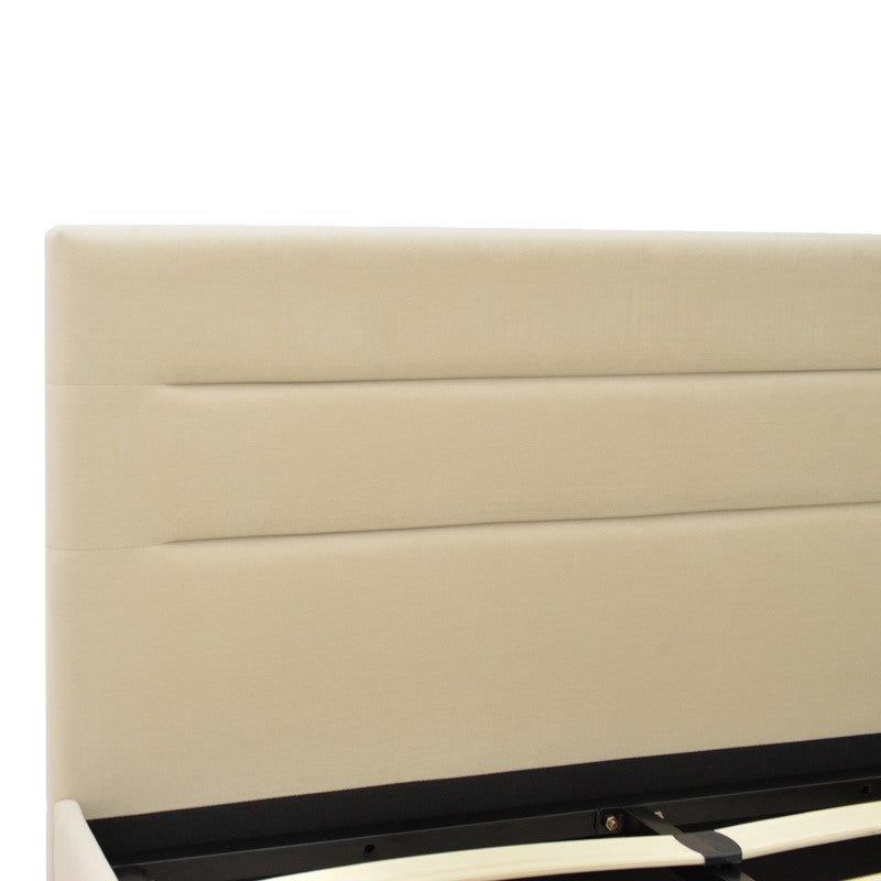 Освежете спалнята си, добавете нотка лукс към вашето пространство и се насладете на спокоен сън с легло Molito. Технически характеристики: Изработен от подсилена дървена рамка и тапициран с висококачествено кадифе, предлагащо дълготрайна издръжливост. Предлага се в модерен цвят нежно екрю. Таблата разполага с подсилени шевове, придаващи минималистичен, но луксозен вид. Основата се поддържа от четири здрави черни дървени крака. Включва повдигащ механизъм за ламелите, осигуряващ достатъчно място за съхранение. Съвместим с матрак 120x200 см (не е включен в леглото). Размери на продукта: Дължина: 128 см. Ширина: 214 см. Височина: 91 см. Забележки: Продуктът се доставя разглобен, в оригиналната си фабрична опаковка, с включени подробни инструкции за сглобяване. Действителният цветови нюанс на продукта може леко да се различава от вида му на вашия екран.