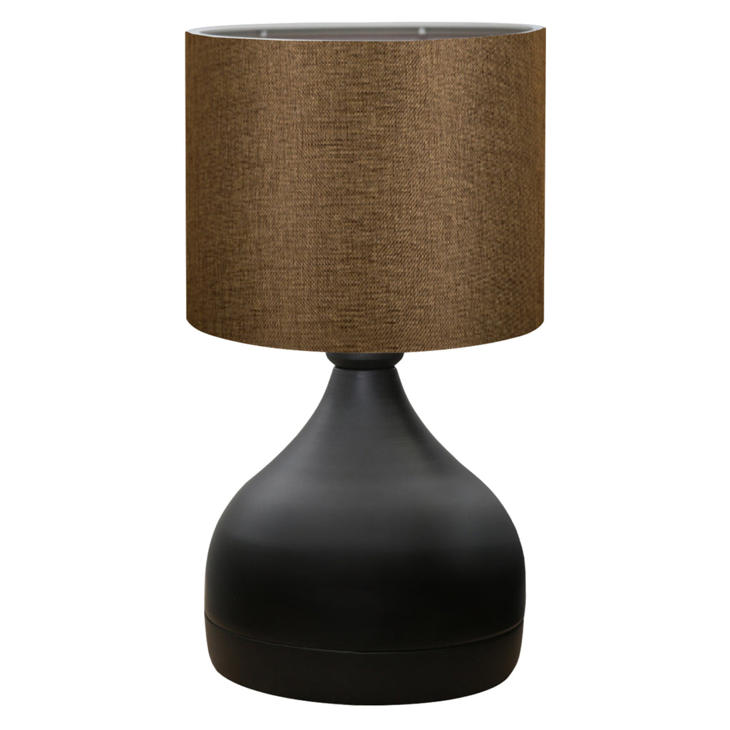 Настолна лампа в черен цвят с "барабан" в кафяв цвят. Красива лампа, която ще създаде атмосферата, която винаги сте си представяли за вашето пространство. Платът "барабан" предлага на вашето пространство мигновено стилистично надграждане. Особено кафявият цвят на "барабана" наистина създава впечатление за неограничен лукс. Тялото на лампата е в елегантна форма на полубутилка, а комбинацията с "барабана" създава интимен образ, който ще ви отпусне след напрегнат ден. Тези видове лампи не са предназначени за лампи за четене и това винаги трябва да се има предвид при избора им. Те са чисто декоративни и съвпадението им с околното пространство трябва да е хармонично. Тази лампа е семпла, елегантна и удобна по размер, предоставяща безброй възможности за "връзване" с останалата част от вашия декор. Това е едно малко произведение на изкуството. ТЕХНИЧЕСКИ ХАРАКТЕРИСТИКИ: Цокъл на крушка: Е27 Цокъл на крушка Тип на крушката: LED- Максимални размери на "барабан" 15w: 18.5x17см. Обща височина: 45 см. Дължина на кабела: 150 см. Има CE сертификат. МАТЕРИАЛИ НА ИЗРАБОТКА: Корпусът на лампата е метален в черен цвят, което прави вашата лампа издържана на времето. "Шапката" е платнена. ПОДДРЪЖКА: Лампата не се нуждае от специална поддръжка. Достатъчно е почистване на прах на редовни интервали. За най-добър резултат избършете металната повърхност с влажна кърпа и вашата лампа ще изглежда като нова. Избягвайте използването на химически почистващи препарати, за да не промените цвета. ПРЕДИМСТВА: Естетическото превъзходство на тази лампа ще я накара да се открои във вашето пространство. Освен в различни стаи във вашия дом, той може да се впише и в професионални пространства като ресторанти, кафенета, хотели и др. Черният цвят на светлината в комбинация с кафявия "барабан", както и цялостният дизайн грабват окото, но в същото време изискват специална декоративна съгласуваност, за да подчертаят напълно естетическите си достойнства. Благодарение на класическия си дизайн, той лесно се комбинира с околното пространство, независимо дали е класическа декорация или по-модерна.