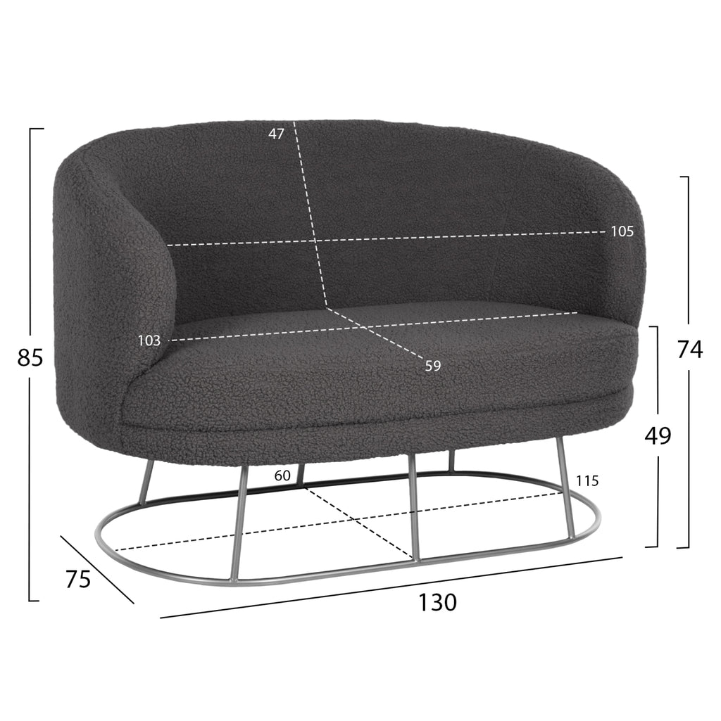 Диван 2-ка ARIEN е модерно и стилно предложение, което ще остави своя отпечатък във всеки хол, където бъде поставен. Неговата почти овална форма със съответната метална основа, съчетана с нисък гръб и високи ръце, побира 2-ма души и предлага комфорт и стил. Красивият СИВ цвят със СРЕБРИСТА основа може да се комбинира с много други цветове в декорацията на всекидневната. РАЗМЕРИ: 130x75x85H см. Размери на седалката: 103x59 см. Размери на гърба: 105x47H см. Височина на седалката: 49 см. Височина на ръцете: 74 см. Разстояние между краката: 115х60 см. МАТЕРИАЛИ НА КОНСТРУКЦИЯТА: Основата е метална, предлагаща здравина, както и устойчивост във времето. „Пълнежите“ както на облегалката, така и на седалката са направени от дунапрен със средна твърдост, който предлага голям комфорт и по-добра опора на тялото. Тапицерията на дивана е изработена изцяло с висококачествена дамаска букле. Всяка тъкан, която има извиване на възел, се нарича букле. Изработено е от почти всички суровини (въпреки че обикновено е синтетично) със специални възли или силно усукани конци, така че да има къдрава повърхност. Не се мачка и може да бъде изчистена, меланжирана, карирана или туид. ПОДДРЪЖКА: Платът от букле можете да избършете с прахосмукачка, а при петна използвайте леко влажна кърпа. ПРЕДИМСТВА: •Здрава конструкция •Естетично превъзходство с материята букле на хастара •Модерен дизайн •Лекота на поддръжка •Лесен монтаж Продуктът се доставя във фабрична опаковка