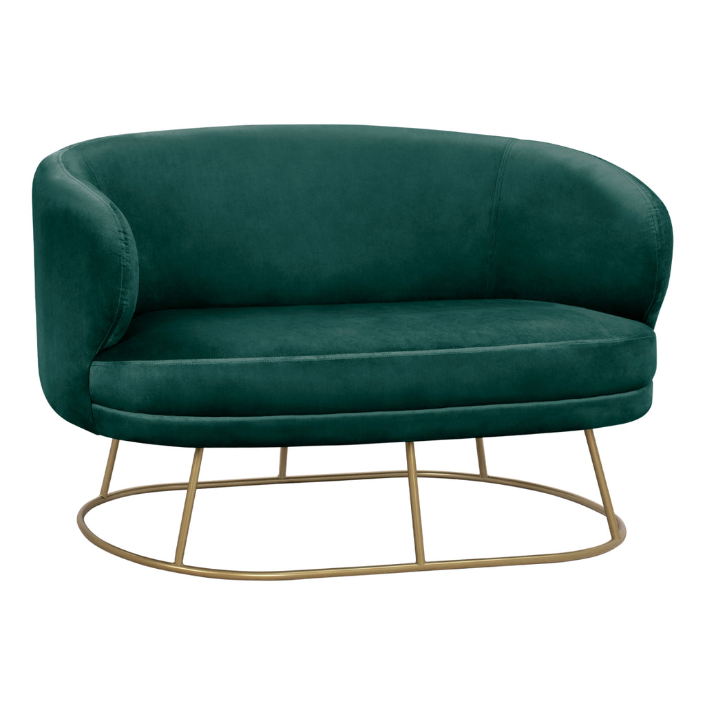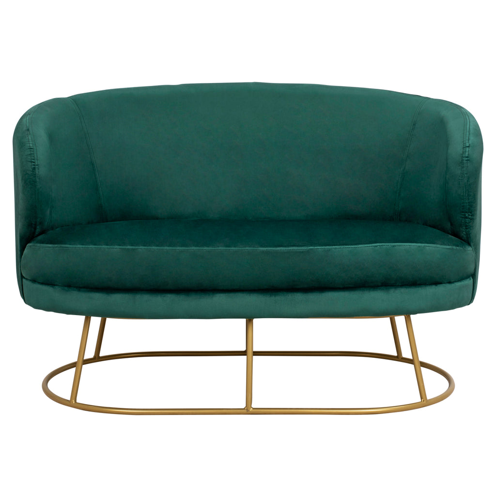 Двуместен диван АРИЕН в нюанс кипарис със златиста метална основа. Нотка елегантност, съчетана с безброй цветови вариации и форми. Леко лъскавата материя с нейния неповторим вид и усещане не без причина е една от живите тенденции par excellence. Плюшеното покритие прави всичко различно! Размери: 125х80х84см. Височина на седалката: 44 см. Височина на ръцете: 70 см. Размери на седалката: 105х57 см.