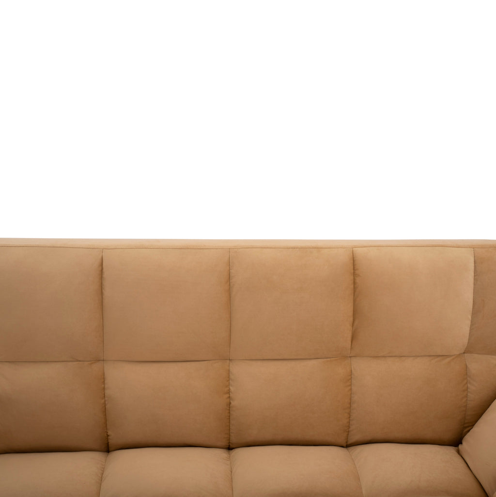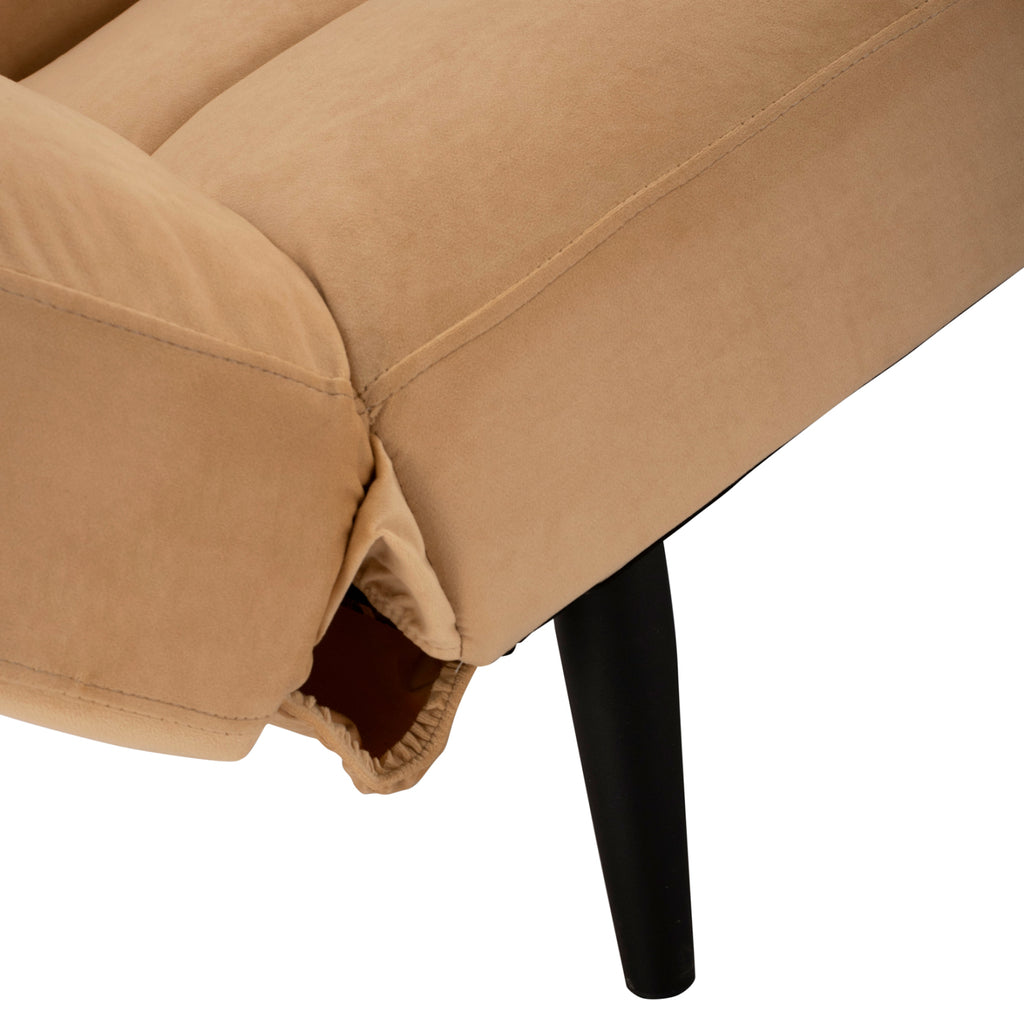 Диван тройка, тапициран с кадифена дамаска в бежов нюанс 182X80X88H см. Разтегателен диван, подходящ за вашата всекидневна или спалня, облегалката му има възможност да се сгъва и лесно да се превърне в удобно легло или да остане легнала, а подлакътниците му са сгъваеми. Ако търсите комфорт и функционалност във вашите мебели, този продукт ще ви осигури и двете. Този универсален диван е идеален за неочаквани нощуващи гости, като същевременно осигурява удобни места за сядане. Има подсилени метални крака, в черен нюанс и е особено стабилен и издръжлив. Той е идеален избор за тези от вас, които търсят нещо елегантно, функционално и качествено. Размери: 182x80x88 см. Височина на седалката: 40см. Размери на седалката: 122-182x50 см. Височина на ръцете: 50-59 см. Размери на ръката: 53х30 см. Разстояние между краката: 117x67 см. Височина на крака: 23,5 см. Легло: 182х110х40см. Размери на гърба: 182х55см.