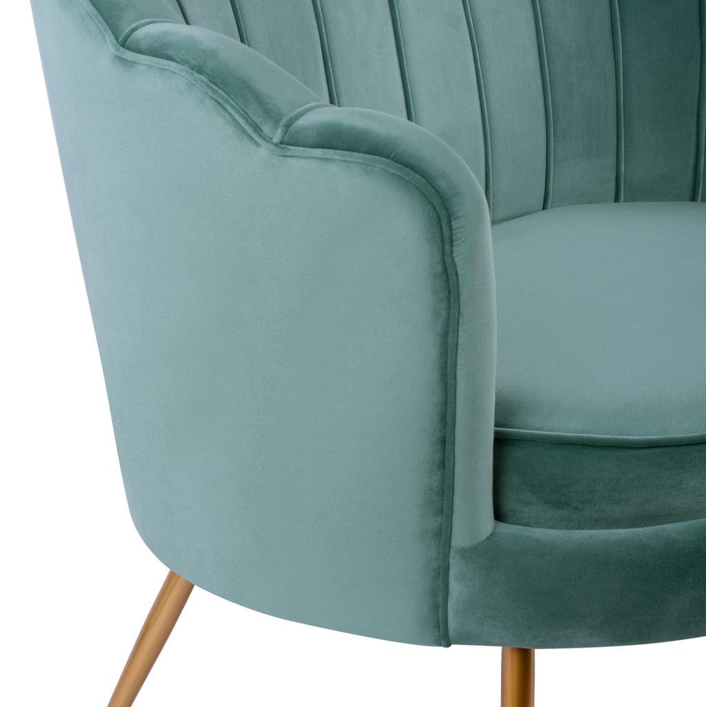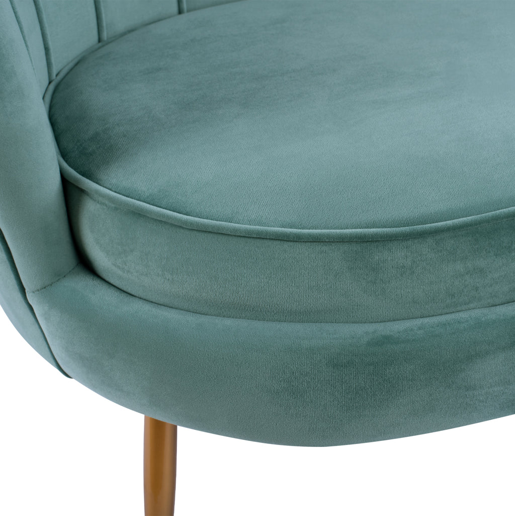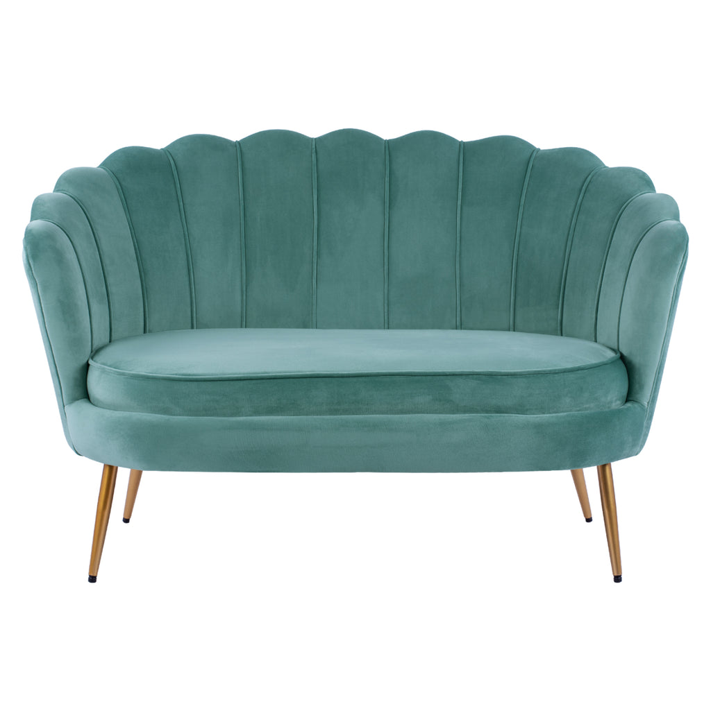 Двуместен диван COQUILLE от кадифе в нюанс шамфъстък с метални крака в златист нюанс. Нотка елегантност, съчетана с безброй цветови вариации и форми. Леко лъскавата материя с нейния неповторим вид и усещане не без причина е една от живите тенденции par excellence. Плюшеното покритие прави всичко различно! Размери: 130x81x86H см. Височина на седалката: 44 см. Височина на ръцете: 73см. Размери на седалката: 103x58 см.