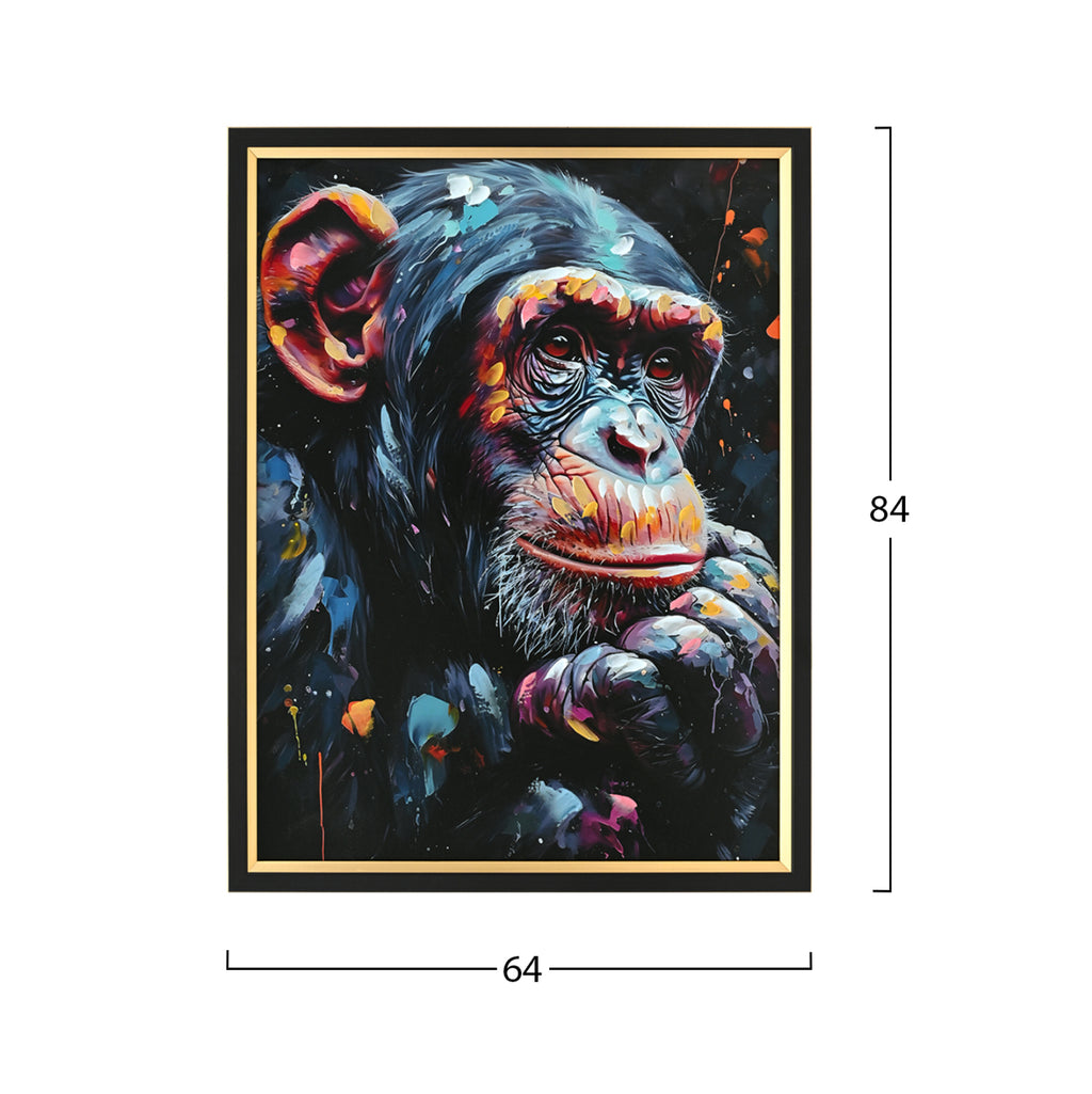Сред всички декоративни елементи, произведенията на изкуството и особено картините играят важна роля: те не само добавят цвят и естетическа красота, но и придават дълбочина и смисъл на нашето пространство. Една картина трансформира начина, по който възприемаме пространството. Така че, украсете вашето пространство с една от новите картини, добавени към нашата гама! Тази картина изобразява маймуна в бежова рамка и е ръчно рисувана върху щамповано платно. Рамката е изработена от черен полистирен. РАЗМЕРИ: 64x4.5(дебелина)x84cm МАТЕРИАЛ ЗА ПРОИЗВОДСТВО: Полистиролът е вид твърда и плътна пластмаса. ** Цветопредаването на продукта може леко да се различава от неговото фотографско представяне на вашия екран.