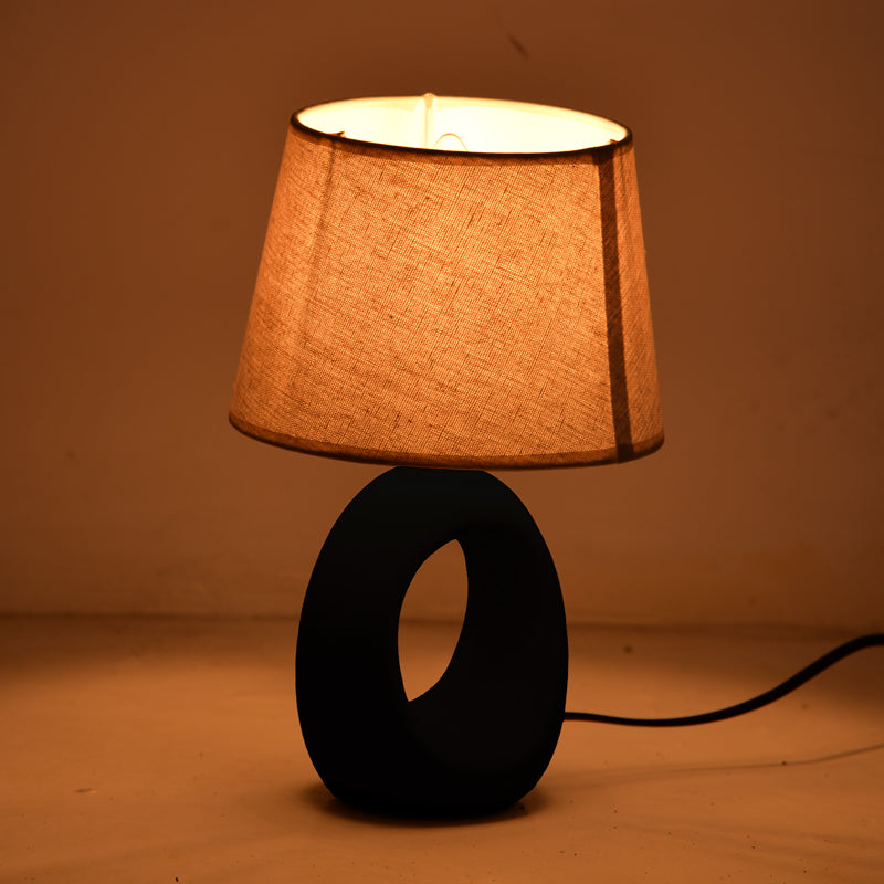- Материал на абажура: Бежов плат за меко и равномерно разсейване на светлината.