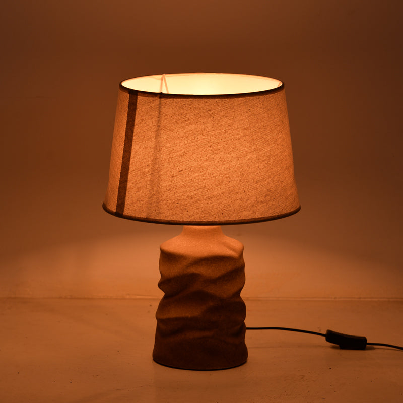 Впечатляващата му основа се отличава с уникална текстура с меки, вълнообразни линии, които добавят дълбочина и топлина. Семплият абажур перфектно допълва основата, разпръсквайки мека, равномерна светлина, която създава успокояваща и приветлива атмосфера.