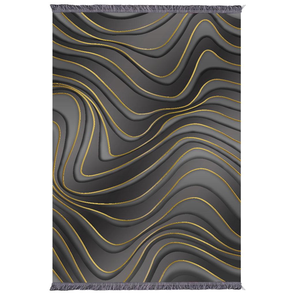 ΜΜ7675.42- килим за хол------ Представяме ви новото попълнение в нашата продуктова гама. Този килим изобразява различни ЗЛАТНИ криви на СИВ фон. Информация: Килимът е част от човешката култура от векове. Най-старият съществуващ килим в света е открит в Армения и датира от 5 век пр.н.е. Разбира се, килимът с възли вероятно произхожда от 3-то или 2-ро хилядолетие пр.н.е. в Западна Азия, може би в района на Каспийско море (Северен Иран) или от Армения, въпреки че има доказателства, че кози и овце са били клани за тази цел от 7-мо хилядолетие! Килимите традиционно се правят от вълна, но от 20-ти век нататък те често се правят от синтетични влакна като полипропилен, найлон или полиестер, тъй като тези влакна са по-евтини от вълната. РАЗМЕРИ: 160Х230см Височина на купчината: 1см. Грамаж: 1300g/m2 МАТЕРИАЛИ: Повърхността на килима е изработена от 100% полиестерни влакна, а основата на килима е 100% памук. Полиестерното влакно е съкратено наименование на синтетичен, изкуствен полимер, който като специален материал най-често се нарича вид, наречен полиетилен терефталат (PET). Ясно е тогава, че е устойчив на всякакви неудобства и особено на влага. Памучната основа на килима също е много устойчива на влага. ПОДДРЪЖКА: Благодарение на издръжливите строителни материали, този килим може да се пере без страх под течаща вода с меки препарати, като препарат за миене на съдове. Разбира се, на пазара има и специални препарати за почистване на всякакви килими, които можете да използвате без страх. Само внимавайте да не изтъркате долната част, която е памучна, а я измийте само с вода. ПРЕДИМСТВА: Този килим с ресни, както всичко в нашата гама, е готов за работа. Той е издръжлив благодарение на индустриалната си конструкция и синтетичните материали, които го изграждат и по същата причина има способността да запази цвета си непроменен. И разбира се, цената му е наистина атрактивна. Просто се уверете, че го вписвате естетически във вашето пространство!