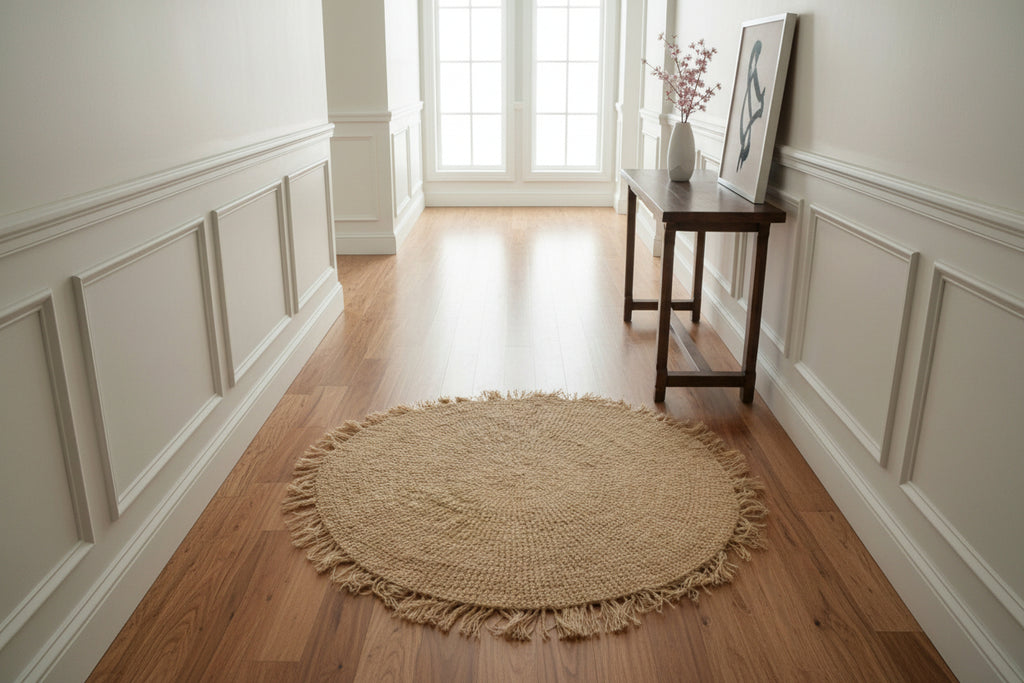 Този зашеметяващ кръгъл килим, изработен от 100% естествена юта, е точно това, от което се нуждаете, за да преобразите всяка стая!