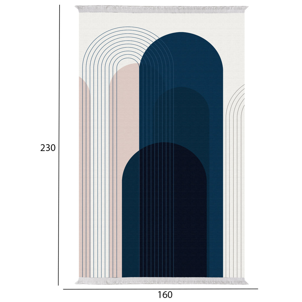 ΜΕ7675.49- Килим за хол------ Представяме ви новото попълнение в нашата продуктова гама. Този килим изобразява различни извити дизайни като високи порти или прозорци с основни цветове БЯЛО и СИНЬО.