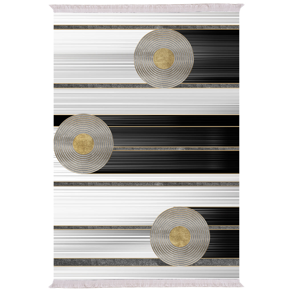 Представяме ви новото попълнение в нашата продуктова гама. Серията килими JOSIANE. Този конкретен килим е модерен от който и ъгъл да го погледнете. Доминиращите му цветове са бяло, сиво, черно и златно. Силната му черта са белите дискове със златни центрове, които дават усещане за левитация и движение и разбира се ще предизвика интерес с особената детайлност и симетрия на линиите. Определено ще надстрои хола ви. Информация: Килимът е част от човешката култура от векове. Най-старият съществуващ килим в света е открит в Армения и датира от 5 век пр.н.е. Разбира се, килимът с възли вероятно произхожда от 3-то или 2-ро хилядолетие пр.н.е. в Западна Азия, може би в района на Каспийско море (Северен Иран) или от Армения, въпреки че има доказателства, че кози и овце са били клани за тази цел от 7-мо хилядолетие! Килимите традиционно се правят от вълна, но от 20-ти век нататък те често се правят от синтетични влакна като полипропилен, найлон или полиестер, тъй като тези влакна са по-евтини от вълната. РАЗМЕРИ: 80Х150см Височина на купчината: 1см. Грамаж: 1300g/m2 МАТЕРИАЛИ: Повърхността на килима е изработена от 100% полиестерни влакна, а основата на килима е 100% памук. Полиестерното влакно е съкратено наименование на синтетичен, изкуствен полимер, който като специален материал най-често се нарича вид, наречен полиетилен терефталат (PET). Ясно е тогава, че е устойчив на всякакви неудобства и особено на влага. Памучната основа на килима също е много устойчива на влага. ПОДДРЪЖКА: Благодарение на издръжливите строителни материали, този килим може да се пере без страх под течаща вода с меки препарати, като препарат за миене на съдове. Разбира се, на пазара има и специални препарати за почистване на всякакви килими, които можете да използвате без страх. Само внимавайте да не изтъркате долната част, която е памучна, а я измийте само с вода. ПРЕДИМСТВА: Този килим с ресни, в особено модерен стил, като всичко в нашата гама, е готов за работа. Той е издръжлив благодарение на индустриалната си конструкция и синтетичните материали, които го изграждат и по същата причина има способността да запази цвета си непроменен. И разбира се, цената му е наистина атрактивна. Просто се уверете, че го вписвате естетически във вашето пространство!