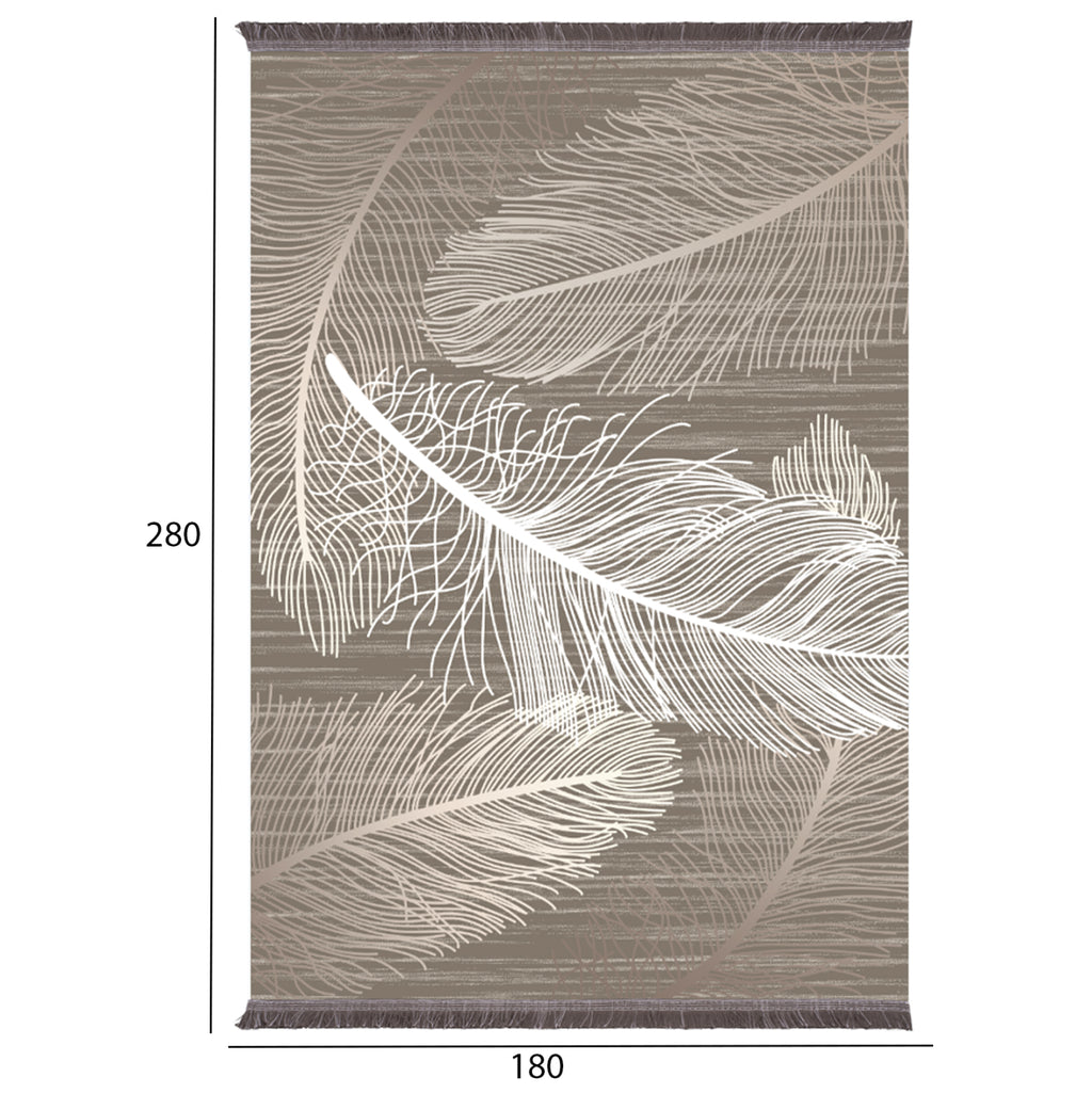 Представяме ви новото попълнение в нашата продуктова гама. Този килим изобразява дървесни листа в линейна форма в БЕЖОВ цвят на КАФЯВ фон.
