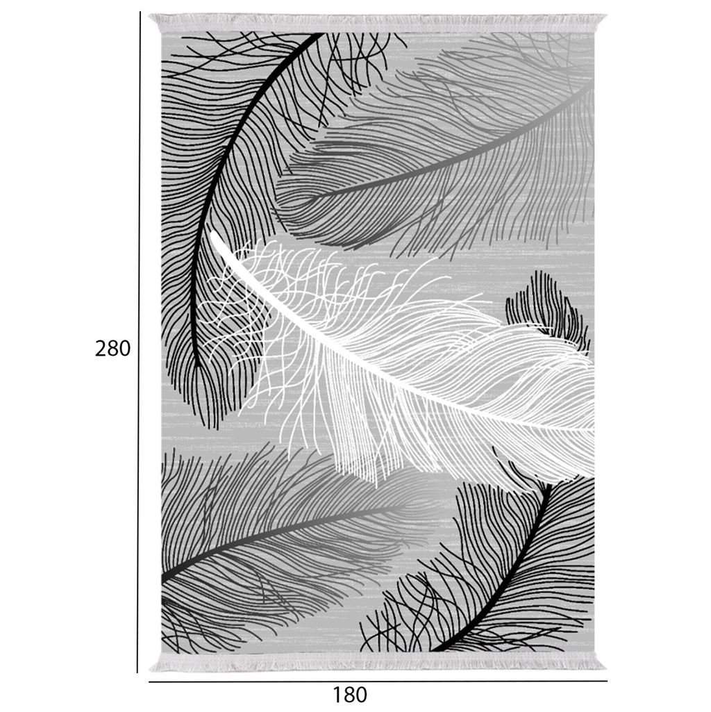 Представяме ви новото попълнение в нашата продуктова гама. Този килим включва птичи пера в бяло, черно и сиво на СВЕТЛОСИВ фон.