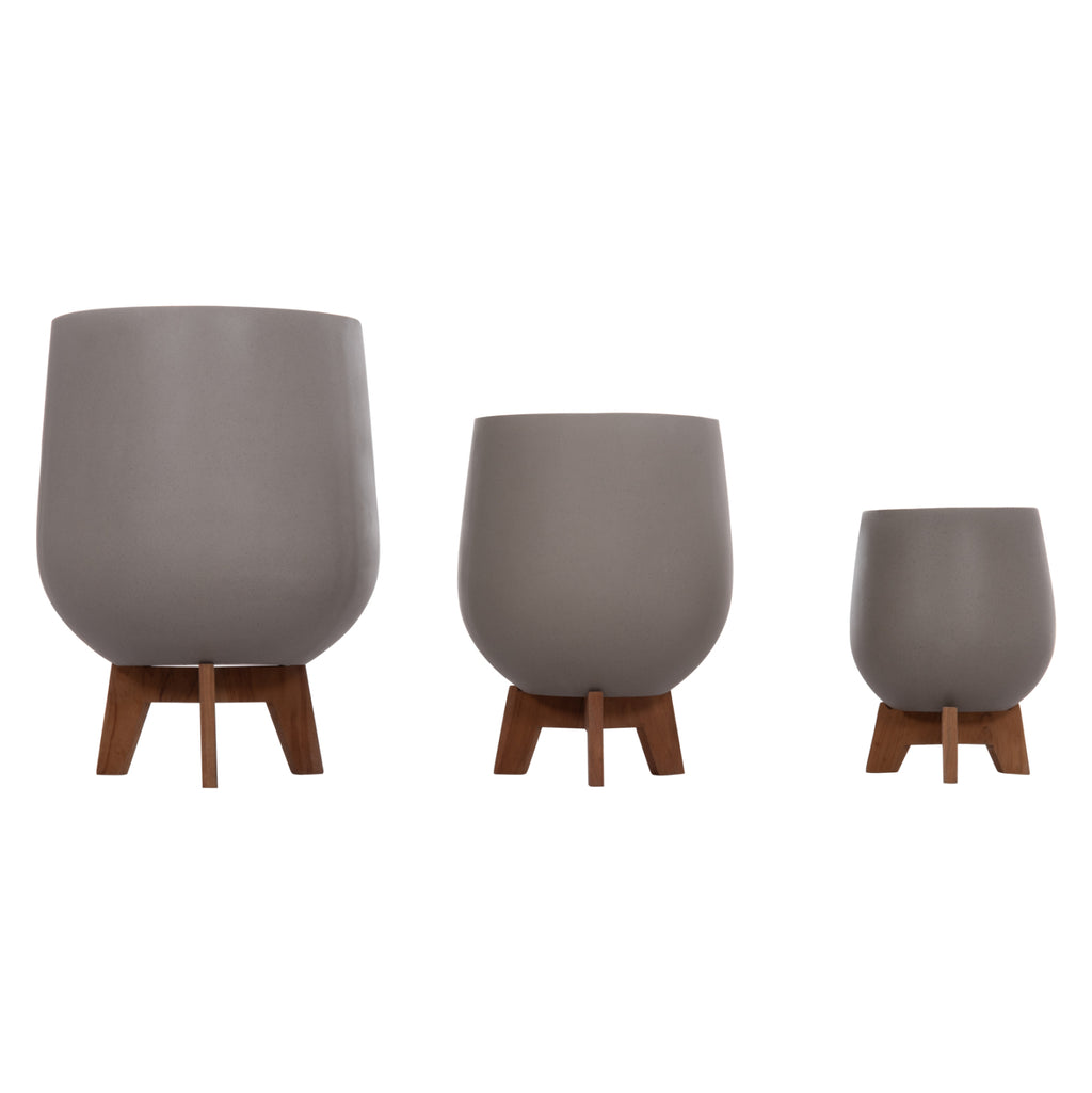 3-те саксии/вази TRYLL са изработени от фиброцимент в различни размери в СИВ цвят. Тяхната специална характеристика е, че са придружени от красиви триножници, изработени от тиково дърво.