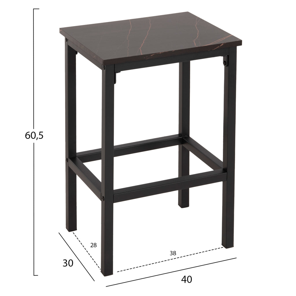 Ако търсите елегантно и устойчиво решение за обзавеждане на бар, ресторант или модерен дом, баровият трапезен комплект BOXY е точното предложение. Този изискан комплект включва правоъгълна маса и четири табуретки без облегалка, изцяло издържани в стилен черен металик с впечатляваща черна мраморна текстура на плота и седалките.