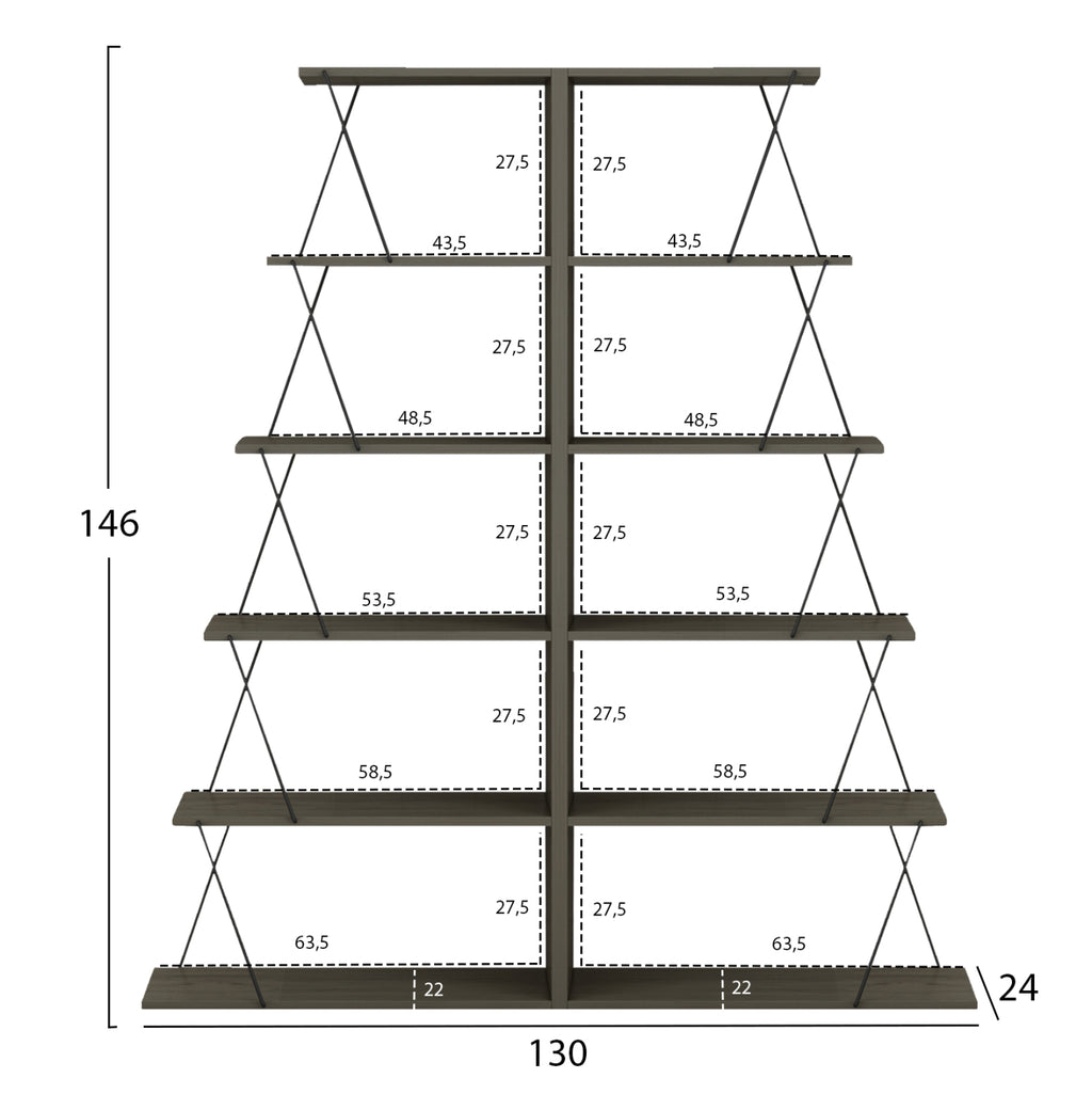 Комплектът от 2 библиотеки MINI TARS е модерно предложение за вашия офис или където искате да поставите библиотека. Можете да ги поставите или поотделно на 2 различни стени, или да ги съедините гръб в гръб, или каквото и да подхожда на вашето пространство. Всяка библиотека има 4 стълбистообразни монтажни рафта, които се поддържат от метални пръти заедно с рафт, който е долната повърхност на библиотеката, като размерите им ги правят удобни за много пространства. Цветът им е МАСЛИНЕНО СИВ с ЧЕРНИ ленти. РАЗМЕРИ: Всяка библиотека: 65x22-24x146H cm. Размери на рафт А: 43.5x22x27.5H см. Размери на рафт B: 48,5x22x27,5H см. Размери на рафт C: 53,5x22x27,5H см. Размери на рафта D: 58.5x22x27.5H cm. Размери на рафта E: 63.5x22x27.5H cm. МАТЕРИАЛИ НА КОНСТРУКЦИЯТА: Изработен от отлично качество меламин с дебелина 15мм и метални пръти с размер Φ6мм с електростатично боядисване. ПОДДРЪЖКА: Меламинът, който е строителният материал, се почиства много лесно от петна благодарение на твърдата си повърхност. Можете да избършете всички повърхности с влажна кърпа и това е достатъчно, за да изглежда библиотеката отново като нова. За упорити петна можете да използвате мек почистващ препарат. ПРЕДИМСТВА: •Стабилна конструкция •Естетично красиви мебели с модерен дизайн •Две отделни опаковки *Продуктът се предлага разглобен във фабрична опаковка. ** Цветопредаването на продукта може леко да се различава от неговото фотографско представяне на вашия екран.