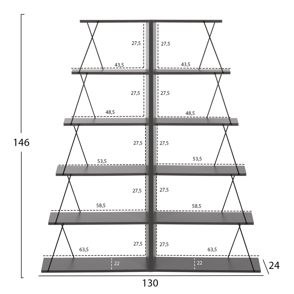 Комплектът от 2 библиотеки MINI TARS е модерно предложение за вашия офис или където искате да поставите библиотека. Можете да ги поставите или поотделно на 2 различни стени, или да ги съедините гръб в гръб, или каквото и да подхожда на вашето пространство. Всяка библиотека има 4 стълбистообразни монтажни рафта, които се поддържат от метални пръти заедно с рафт, който е долната повърхност на библиотеката, като размерите им ги правят удобни за много пространства. Цветът им е СИВ с ЧЕРНИ ленти. РАЗМЕРИ: Всяка библиотека: 65x22-24x146H cm. Размери на рафт А: 43.5x22x27.5H см. Размери на рафт B: 48,5x22x27,5H см. Размери на рафт C: 53,5x22x27,5H см. Размери на рафта D: 58.5x22x27.5H cm. Размери на рафта E: 63.5x22x27.5H cm. МАТЕРИАЛИ НА КОНСТРУКЦИЯТА: Изработен от отлично качество меламин с дебелина 15мм и метални пръти с размер Φ6мм с електростатично боядисване. ПОДДРЪЖКА: Меламинът, който е строителният материал, се почиства много лесно от петна благодарение на твърдата си повърхност. Можете да избършете всички повърхности с влажна кърпа и това е достатъчно, за да изглежда библиотеката отново като нова. За упорити петна можете да използвате мек почистващ препарат. ПРЕДИМСТВА: •Стабилна конструкция •Естетично красиви мебели с модерен дизайн •Две отделни опаковки *Продуктът се предлага разглобен във фабрична опаковка. ** Цветопредаването на продукта може леко да се различава от неговото фотографско представяне на вашия екран.