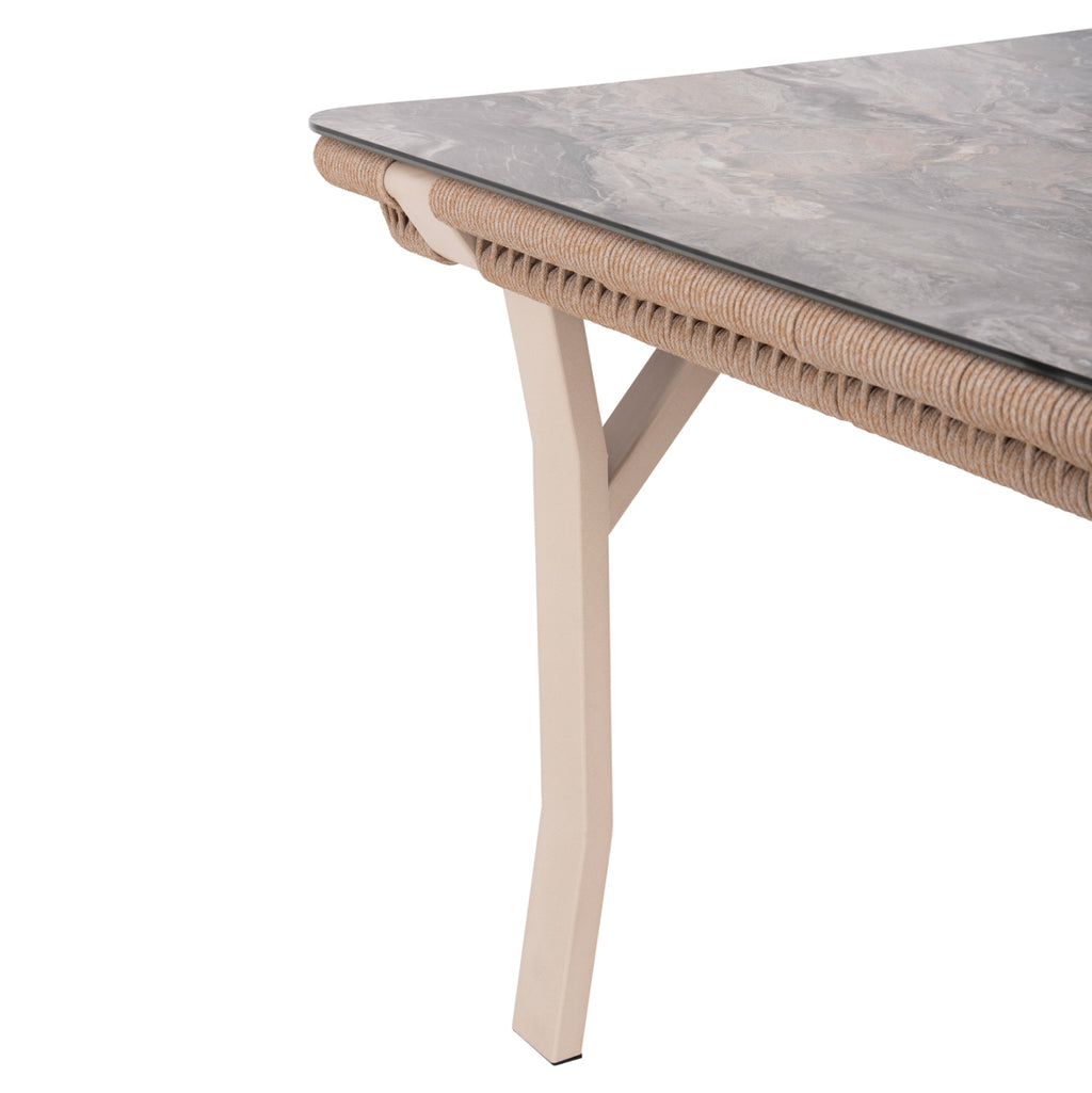 Представяме ви впечатляващия комплект за хранене на открито DRIMM, състоящ се от голяма маса и 6 фотьойла. Комплект, който ще обикнете от пръв поглед. Рамката в целия комплект е изработена от алуминий в БЕЖОВ цвят, покрит с въже в цвят КАПУЧИНО. Красивата маса е с HPL повърхност в цвят МРАМОРНО СИВО. Техният дизайн е красив за гледане, докато тяхната здравина е очевидна. Седалката на фотьойлите е широка, а облегалката им обгръща тялото, което повишава комфорта, който предлагат, в комбинация с удобните възглавници както на седалката, така и на облегалката. Възглавниците са покрити с качествена материя в цвят CAPPUCCINO и са с пълнеж от дунапрени със средна твърдост за максимално удобство, както и ципове за сваляне на калъфките. Какво повече може да поиска някой, за да обнови външното си пространство? РАЗМЕРИ: КРЕСЛА: 64x67x65-75H см. Размери на седалката: 56х47 см. Размери на гърба: 56х31см. Височина на ръцете: 66 см. Височина на седалката: 47 см. Височина на крака: 32 см. Разстояние между краката: 56-62.5x53-64 см. Разстояние задни крака: 27,5-39,5 см. МАСА: 201x101x79H см. Разстояние между краката: 147-161.5x78-84.5см. МАТЕРИАЛ НА ИЗРАБОТКА: Целият комплект е изработен от алуминий. Алуминият е метал с отлични механични свойства и много устойчив на различни форми на корозия по природа и изисква минимални разходи за поддръжка. Може да се рециклира неограничено време, запазвайки характеристиките си без влошаване на качеството. Плотът е изработен от HPL. Истинското му име е ламинат с високо налягане „HPL“. Това са дъски, покрити с листове от синтетични материали, които приличат на дърво. Като материал е с матово или гланцово покритие. Поставя се върху MDF или новопан със специални смоли и има голямо разнообразие от цветове и имитации на дърво или други дизайни. Основните му характеристики са неговата устойчивост на удари, абразия и петна, устойчивостта му на създаване на бактерии и накрая устойчивостта на цвета му на светлина и изкуствено осветление. Той също така показва устойчивост на високи температури, с отлична устойчивост на огън, надраскване и особено висока водоустойчивост. ПОДДРЪЖКА: Идеалното за поддръжка на алуминий е използването на много мека кърпа или гъба, обилно количество вода и мек почистващ продукт, като например препарат за миене на съдове. Алуминиевите мебели нямат специални изисквания за поддръжка, тъй като не корозират. Сапунът и водата са достатъчни, за да ги поддържат чисти и блестящи. *Комплектът се доставя разглобен във фабрична опаковка ** Цветопредаването на продукта може леко да се различава от фотографското изображение на вашия екран.