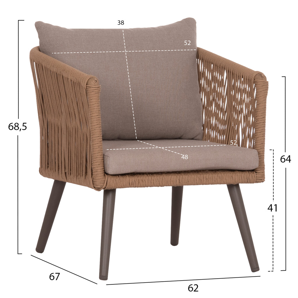 Представяме ви красивата външна холна гарнитура FREJA в цветова комбинация, която ще харесате, с 1 холна маса, 2 фотьойла и 1 двуместен диван. Рамката в целия комплект е изработена от алуминий в цвят КАПУЧИНО, покрит със синтетичен РАТАН в цвят БЕЖ. Техният дизайн е красив за гледане, докато тяхната здравина е очевидна. Холната маса е много практична, а фотьойлите са широки и обгръщащи тялото, което повишава комфорта, който предлагат, съчетан с удобните възглавници както на седалката, така и на облегалката. Двуместният диван в подобен дизайн обаче е най-впечатляващата част от този комплект, което го прави еталон. Възглавниците в целия комплект са покрити с полиестерен плат в БЕЖОВ цвят и са с пълнеж от дунапрени със средна твърдост за максимално удобство, както и с ципове. Какво повече може да поиска някой, за да обнови екстериора на своя бизнес? РАЗМЕРИ: Диван: 137x67x68.5H см. Размери на седалката: 122x48 см. Размери на гърба: 120х35см. Височина на ръцете: 64 см. Височина на седалката: 41 см. Височина на крака: 30 см. Фотьойли: 62x67x68.5H см. Размери на седалката: 52х48 см. Размери на гърба: 52х38см. Височина на ръцете: 64 см. Височина на седалката: 41 см. Височина на крака: 30 см. Разстояние между краката: 50х56 см. Маса: 90x50x42H см. Разстояние между краката: 73-79x32-38 см. Дебелина на седалната възглавница: 6см. Размери вкл.Ратан: Φ5mm, 7-D21 МАТЕРИАЛ НА КОНСТРУКЦИЯТА: Целият комплект е изработен от алуминий с електростатично боядисване. Алуминият е метал с отлични механични свойства и много устойчив на различни форми на корозия по природа и изисква минимални разходи за поддръжка. Може да се рециклира неограничено време, запазвайки характеристиките си без влошаване на качеството. Електростатичното боядисване е процес на сухо покритие, използван като метално покритие чрез електростатичен процес, който след това се „свързва“ към метала чрез топлина. Подходящ е както за вътрешни, така и за външни приложения. Синтетичният ратан е направен да имитира вида и усещането на естествения ратан. Изработен е от смес от пластмаса и други материали и често се използва за създаване на градински мебели и други продукти на открито. ПОДДРЪЖКА: Идеалното решение за поддръжка на алуминий, както и на синтетичен ратан, е използването на много мека кърпа или гъба, обилно количество вода и мек почистващ продукт, като препарат за съдове. Алуминиевите мебели нямат специални изисквания за поддръжка, тъй като не корозират. *Комплектът се доставя несглобен с подробни инструкции за сглобяване **Точното цветопредаване на продукта може леко да се различава от действителния продукт поради различните настройки на всеки монитор.