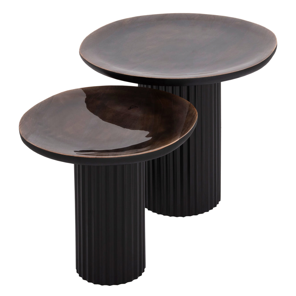 ELAF е комплект, състоящ се от 2 холни маси с много специален дизайн и материали за изработка. Почти кръглите повърхности са изработени от мангово дърво в кафяв цвят и в полупрозрачно емайлирано покритие. Основите са метални в черен цвят с плисиран дизайн. Различните височини подчертават практичността на този комплект, който ще задоволи нуждите във вашата всекидневна. РАЗМЕРИ: МАЛКИ: 45x43x42H см. Основа: Φ18 см. ГОЛЯМ: 56x54x48H cm. Основа: Φ23 см. МАТЕРИАЛИ НА КОНСТРУКЦИЯТА: MANGO е плътна и здрава твърда дървесина с особено привлекателни води. Той е по-лек от другите видове дърво и като цяло е водоустойчив. ПОДДРЪЖКА: Масата не се нуждае от специална поддръжка. Достатъчно е минаване с влажна кърпа, а ако има петна с нежен спрей от многото на пазара. *Доставя се несглобен във фабрична опаковка ** Цветопредаването на продукта може леко да се различава от фотографското представяне на вашия екран.