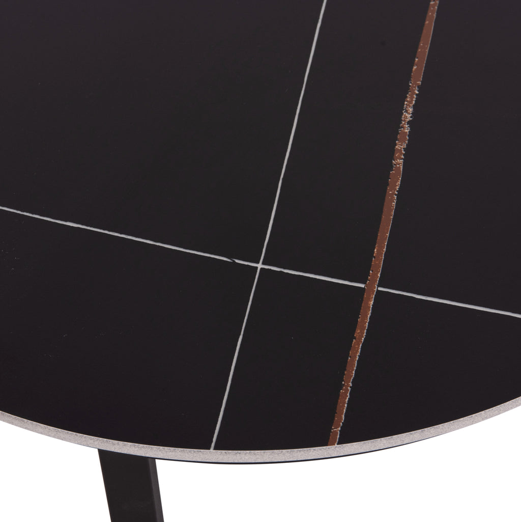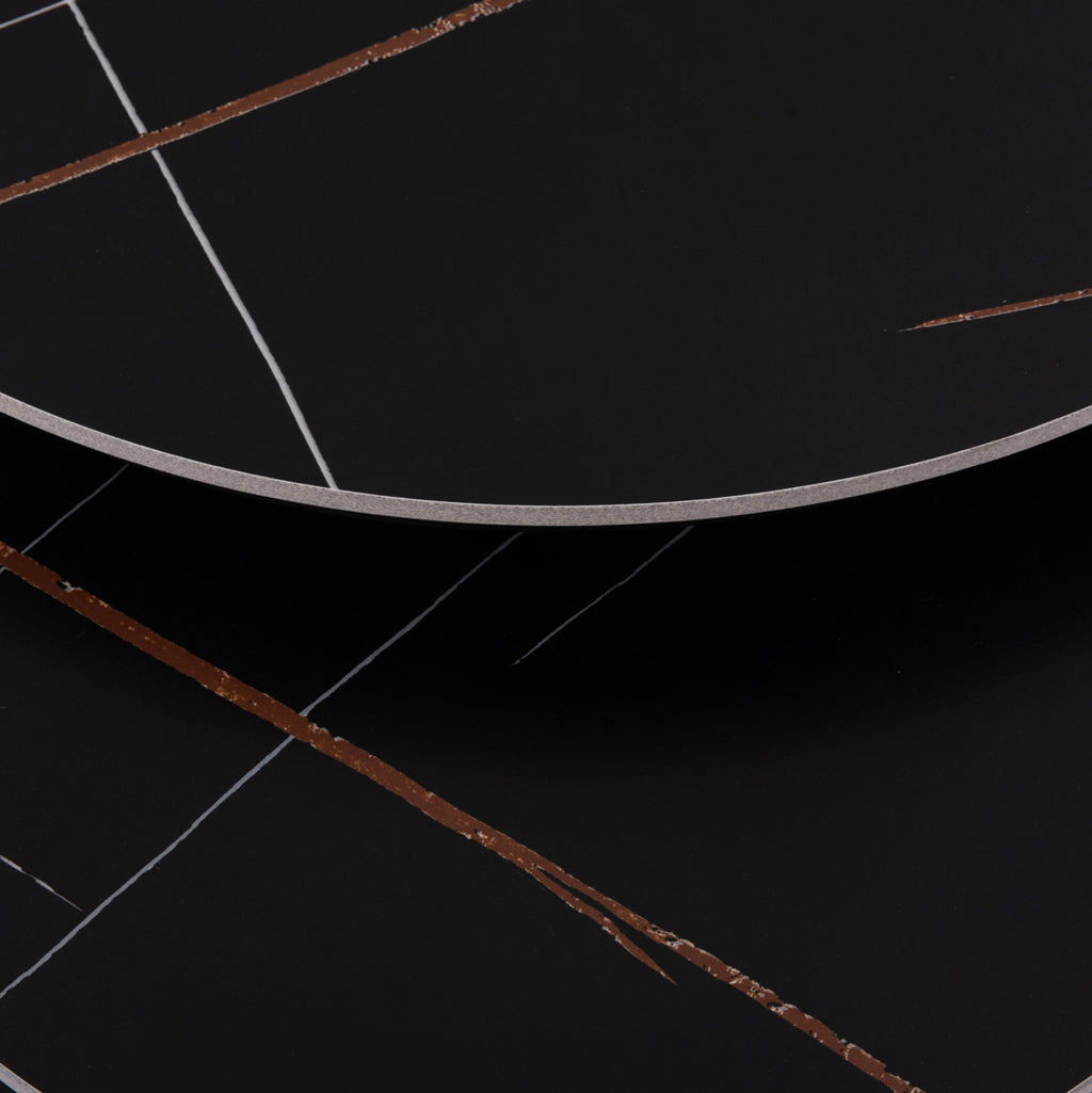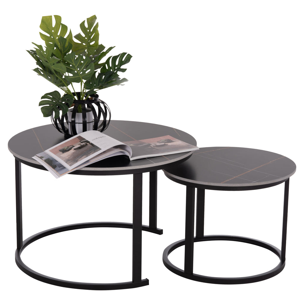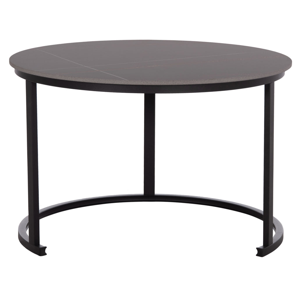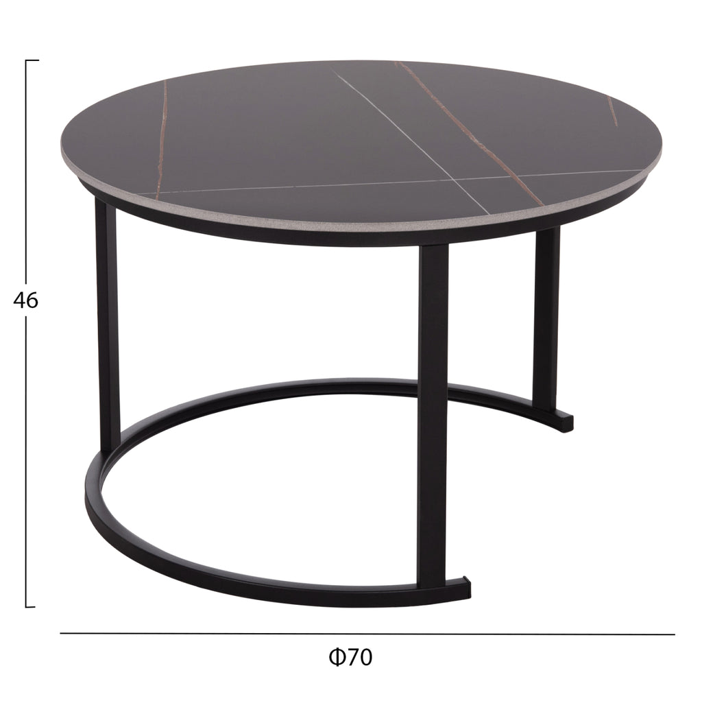 Холните масички TALOS ще ви зарадват със своя стил и практичност. Представляват 2 масички за кафе, едната по-висока, а другата по-ниска, със специална характеристика, че по-високата е поставена върху полукръгла основа с три метални крака, което позволява на по-късата да се побере и съхранява точно отдолу. Основите на двете масички са метални в черно, а повърхностите им са керамични в цвят ЧЕРЕН МРАМОР. РАЗМЕРИ: Височина: Φ70x45.5H см. Ниска: Φ50x38H см. Дебелина на керамичния плот: 12 мм. МАТЕРИАЛИ ЗА КОНСТРУКЦИЯ: Повърхностите на масите са керамични. Керамичният материал се произвежда чрез нагряване и охлаждане на различни материали, което води до твърда и топлоустойчива повърхност. Керамичните материали са a) Устойчиви на надраскване: Керамиката има твърда повърхност, която е устойчива на надрасквания и вдлъбнатини. b) Устойчиви на топлина: Едно от уникалните свойства на керамичните маси е естествената им устойчивост на топлина. c) Лесни за почистване: Непорестата природа на керамиката прави почистването изключително лесно. Краката и основите на масите са изработени от метал с електростатично боядисване. Електростатичното боядисване е процес на сухо покритие, който се използва като висококачествено метално покритие както по отношение на функционалност, така и на цялостния външен вид. ПОДДРЪЖКА: Както повърхността, така и краката се почистват лесно с влажна кърпа. ПРЕДИМСТВА: • Здрава конструкция • Качествени материали и методи на производство • Естетически красиви маси • Практични при употреба • Не заемат много място, тъй като се побират една под друга *Продуктът се доставя несглобен във фабрична опаковка ** Цветопредаването на продукта може леко да се различава от фотографското му представяне на вашия екран. "Запазена марка"