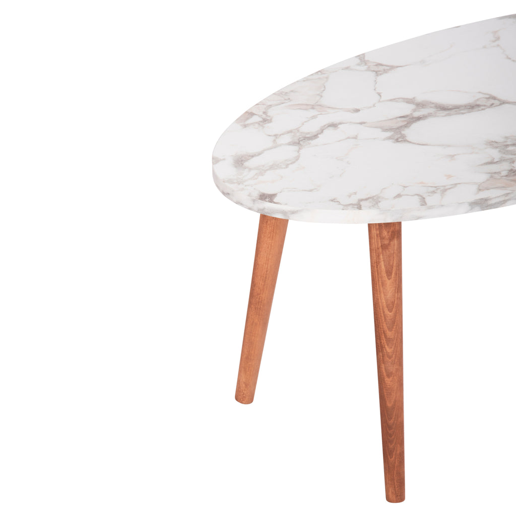 Открийте VITAL. Комплект, който ще задоволи и обслужи всяка ваша нужда в хола. Състои се от овална холна маса и 3 кръгли помощни маси на различни височини. Повърхностите на масите са изработени от меламин във визия БЯЛ МРАМОР, а краката им са дървени в цвят ОРЕХ. РАЗМЕРИ: Овална маса: 90x50x42.5H см. Холни маси: Височина: Φ35x56H см. Среден: Φ35x52H cm. Ниска: Φ35x48H см. ПОДДРЪЖКА: Както повърхността, така и краката се почистват лесно с влажна кърпа. КАКВО ХАРЕСВАМЕ: •Основен дизайн •Практичност •Съотношение цена/качество *Продуктът се доставя във фабрична опаковка ** Цветопредаването на продукта може леко да се различава от фотографското представяне на вашия екран.