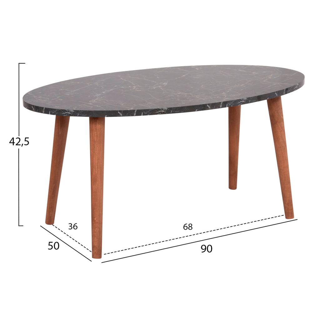 Открийте VITAL. Комплект, който ще задоволи и обслужи всяка ваша нужда в хола. Състои се от овална холна маса и 3 кръгли помощни маси на различни височини. Повърхностите на масите са изработени от меламин във вид на ЧЕРЕН МРАМОР, а краката им са дървени в цвят ОРЕХ. РАЗМЕРИ: Овална маса: 90x50x42.5H см. Холни маси: Височина: Φ35x56H см. Среден: Φ35x52H cm. Ниска: Φ35x48H см. ПОДДРЪЖКА: Както повърхността, така и краката се почистват лесно с влажна кърпа. КАКВО ХАРЕСВАМЕ: •Основен дизайн •Практичност •Съотношение цена/качество *Продуктът се доставя във фабрична опаковка ** Цветопредаването на продукта може леко да се различава от фотографското представяне на вашия екран.