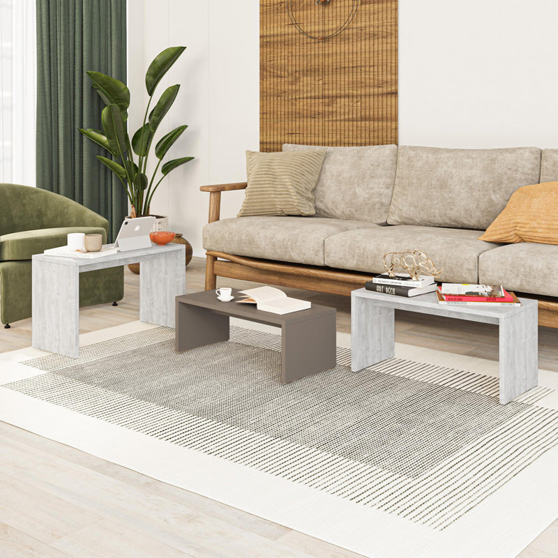 Комплектът маса Kantar включва три части, които могат да се използват по различни начини, за да отговарят на вашите нужди. Развихрете креативността си и променете декора, както желаете.